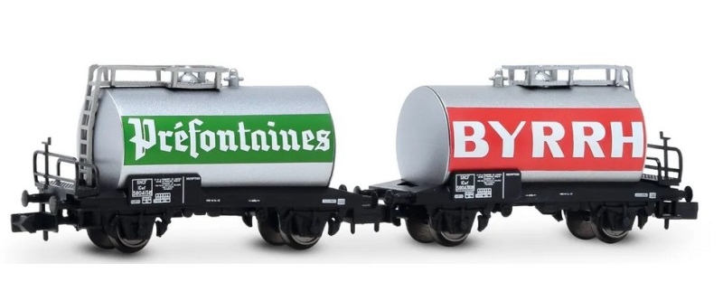 wagons citernes à essieux, marquages BIRRH et Préfontaines, époque IV, 192mm