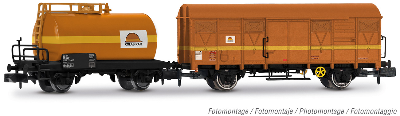 | Description | Coffret de deux wagons citernes à bogies pour le transport de chlore | |