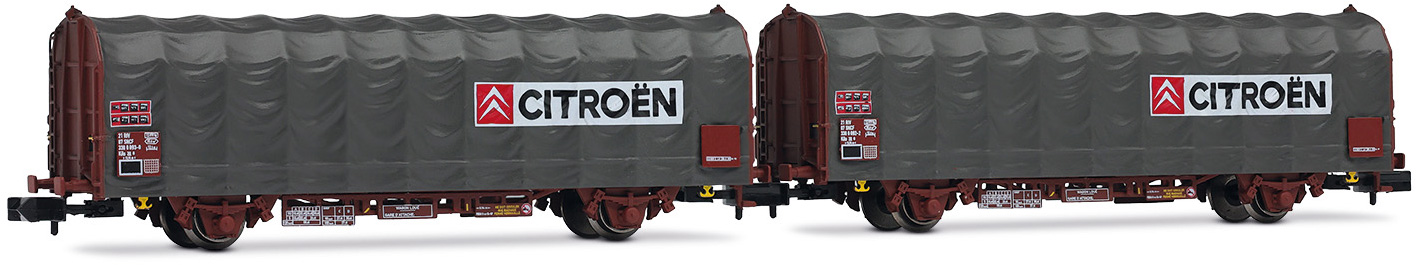 HN6712 : Coffret de deux wagons bâches courts à essieux de type K70, marquage