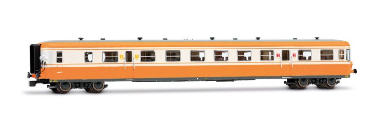Référence A 0384 à la création du Gruppo Rivarossi en 2001 RÉGION CENTRE Une voiture à portes louvoyantes coulissantes, les deux autres avec porte de type Mielich, dite affleurantes Logo casquette couleur Longueur totale : 495 mm Il existe une voiture 2.Cl. complémentaire sous la Référence 3620 Nouveauté du salon de Nuremberg 2000 Annonce dans Loco Revue N° 639 de septembre 2000 Présentation Loco Revue N° 640 de octobre 2000 |