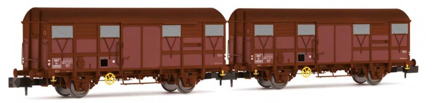 HN6717 - Set de deux wagons couverts Gs avec feux de fin de convoi sur un