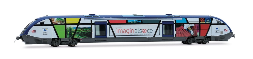 livrée multicolore région Alsace décoration “Imaginalsace” interface digitale Next18 (NEM 662) inversion des feux rouges et blancs selon le sens de circulation interface digitale Next18 longueur : 111 mm Historique du modèle |