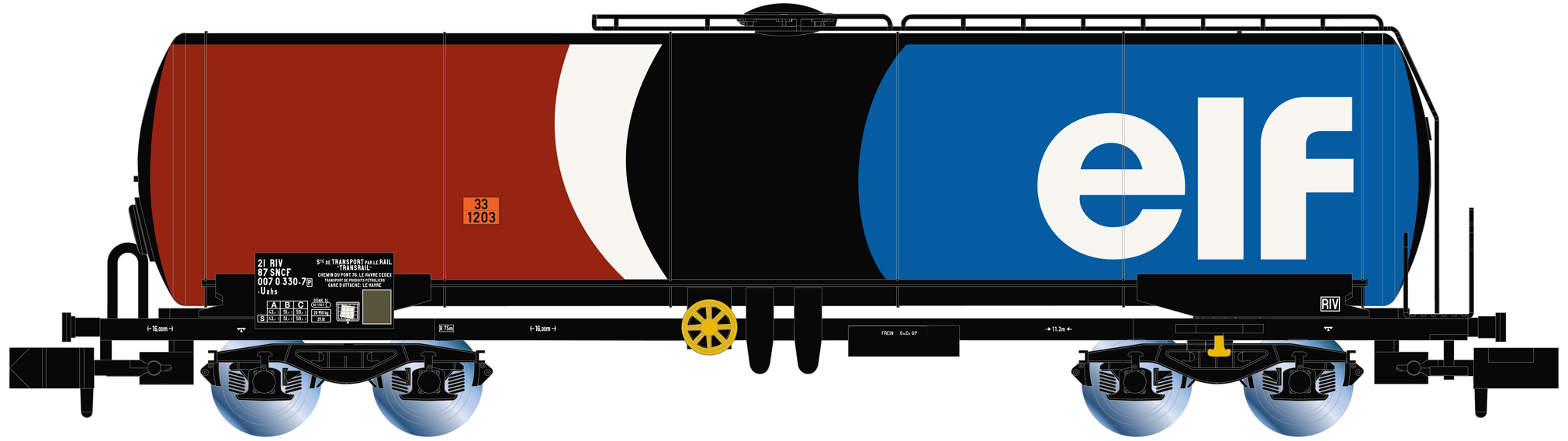 Couleurs rouge, noire , bleue et blanche Marquage ELF en blanc Attelage court à élongation NEM 355 Longueur : 100 mm Rayon de courbure minimal : 192 mm |