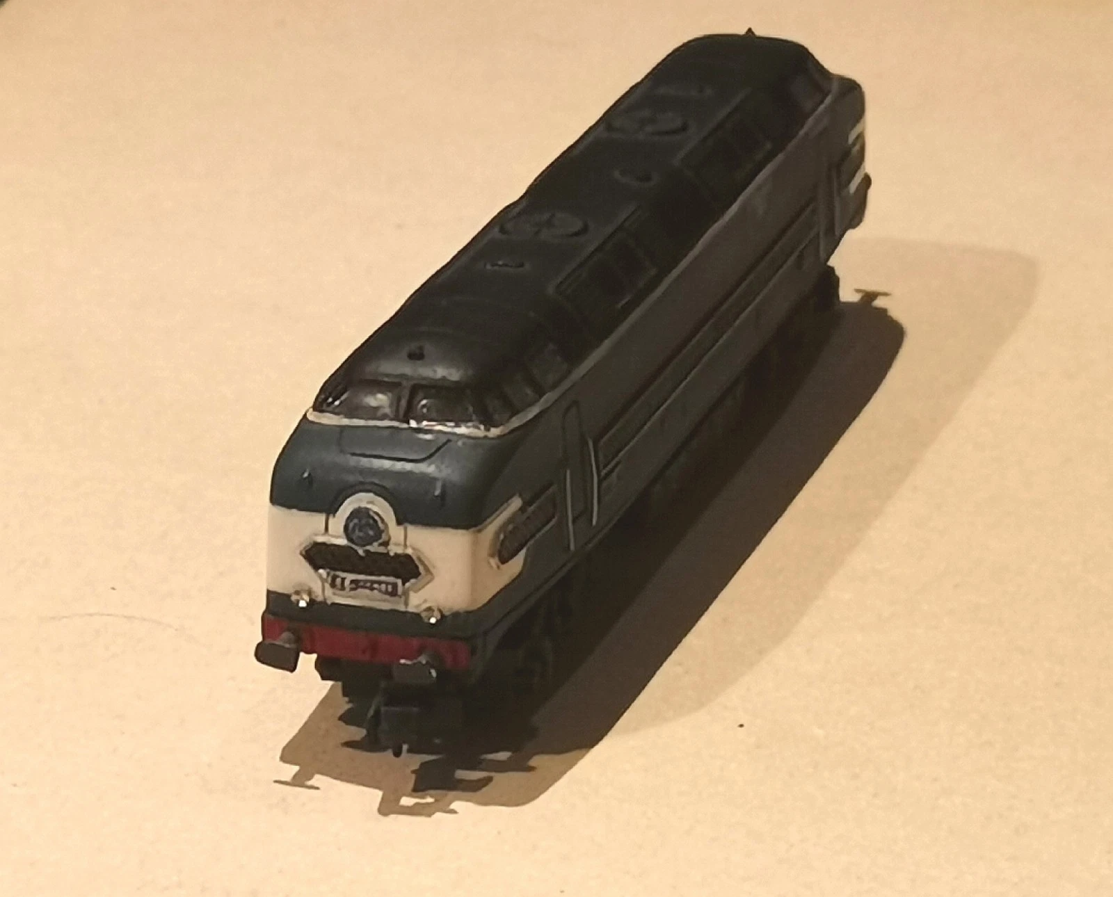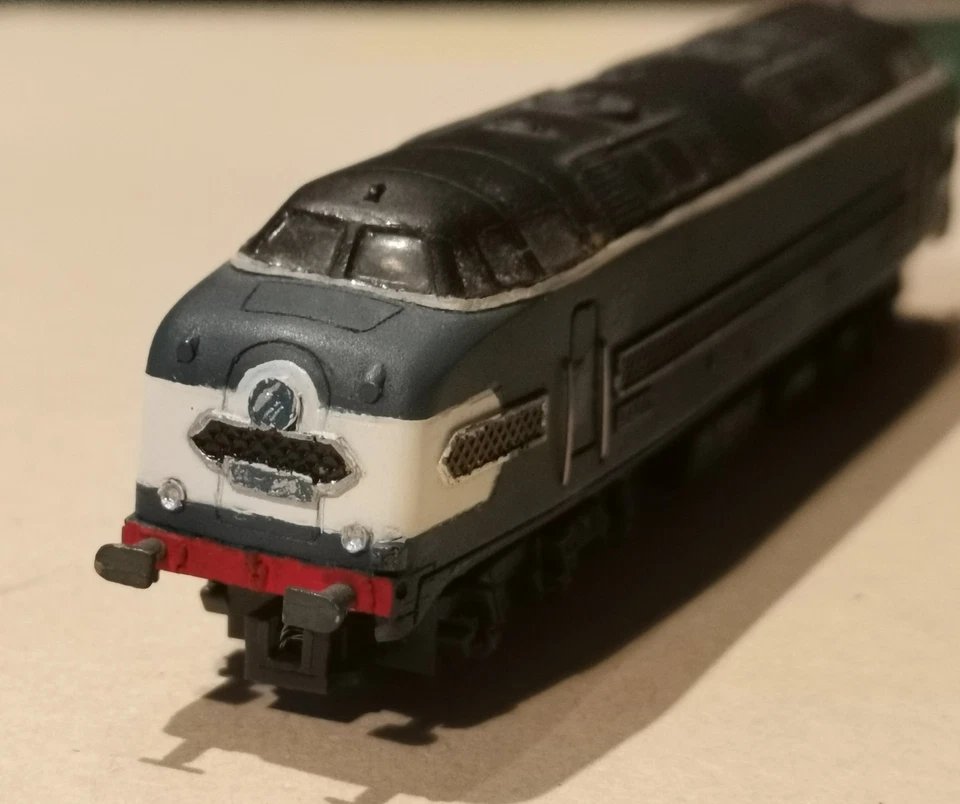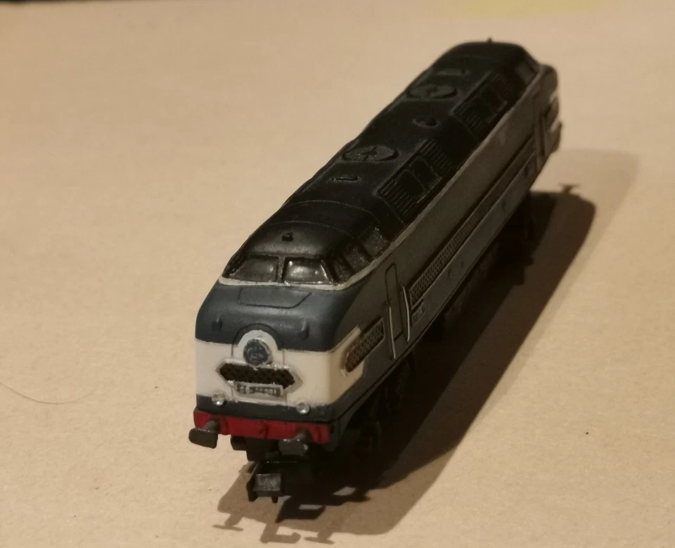 grise et blanche Réalisée sur la base d'une locomotive Arnold BB 25200 Cette livrée devait être produite par Arnold en 2004 mais la production d'Arnold Germany a cessé avant la sortie du modèle. Longueur : 101 mm Historique du modèle réel |
