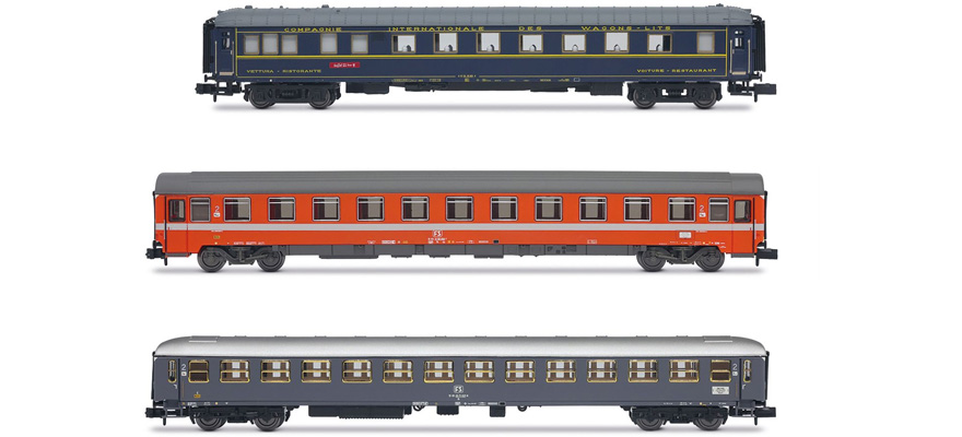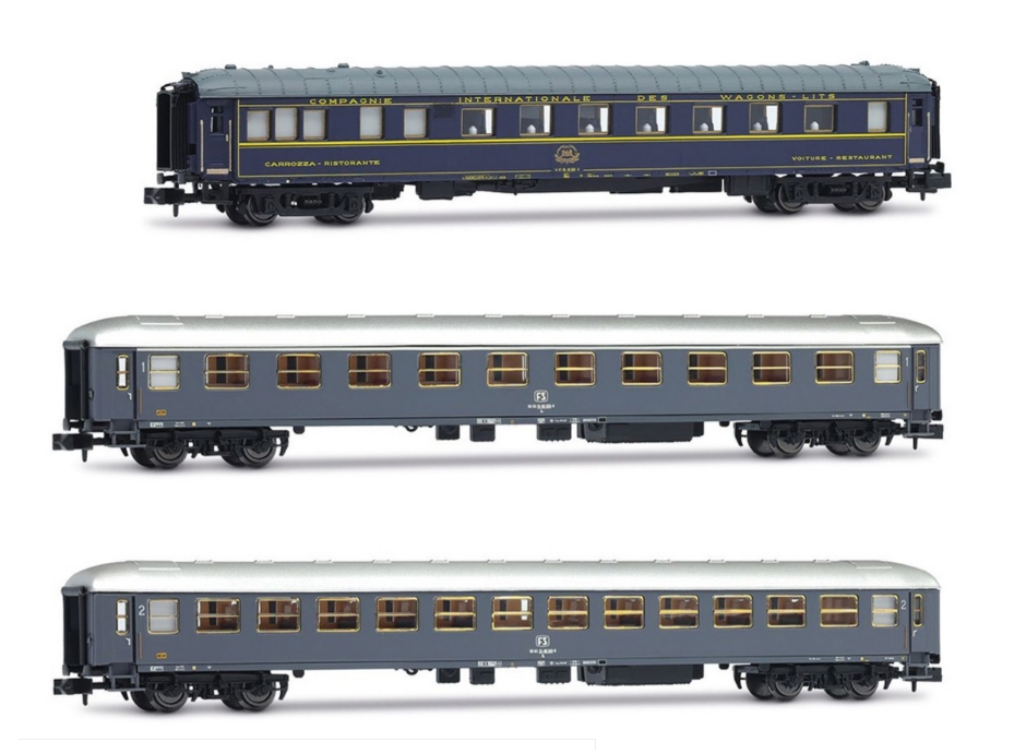 | Description | Coffret de trois voitures, unee CIWL WR, une UIC-X 1.Cl. '64 et une UIC-X 2.Cl. '64 du FS | |