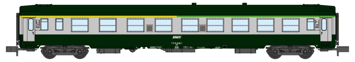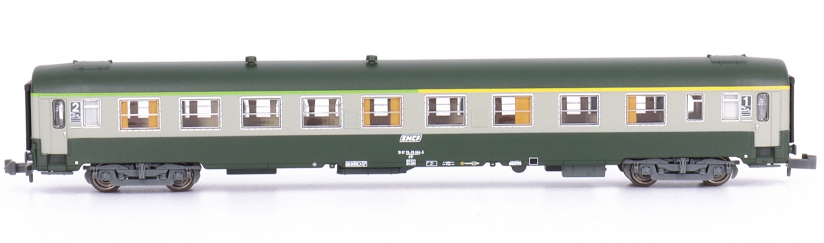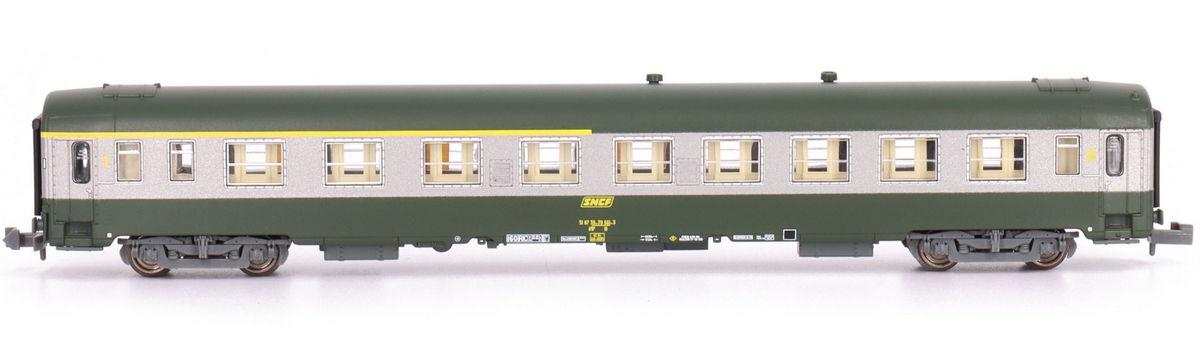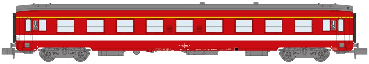 une voiture UIC A9 1.CL. et une voiture UIC B10 2.Cl. |