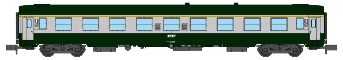Voiture couchettes UIC 2.Cl. B9c9x à toit bas en livrée TEN |