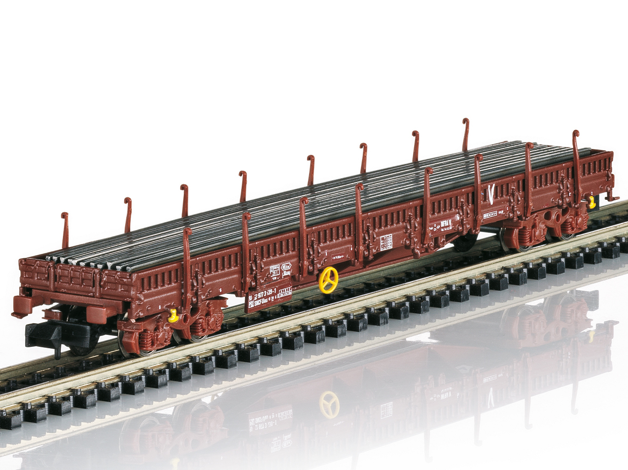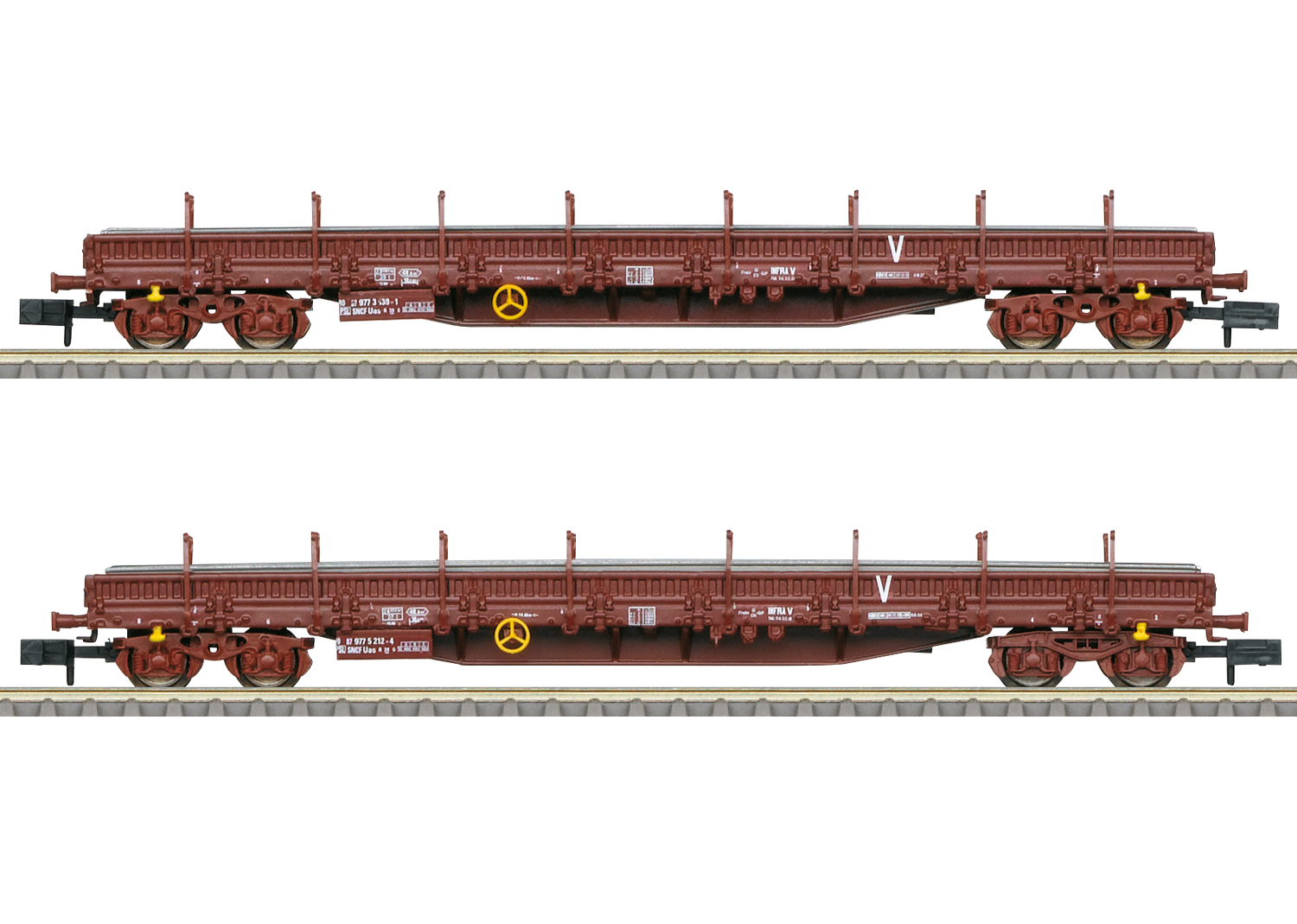 18290 : coffret de deux wagons plats à bogies type Ua chargés de rails, un avec bogies soudés,l'autre avec bogies moulés, époque VI