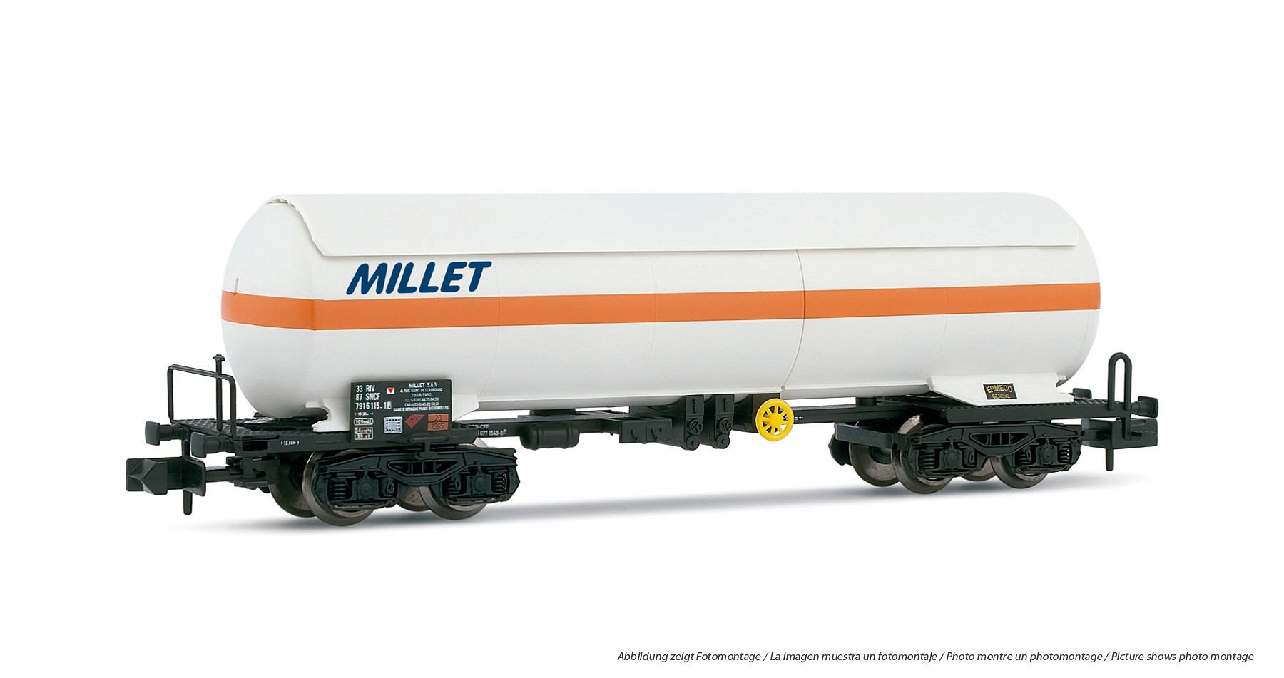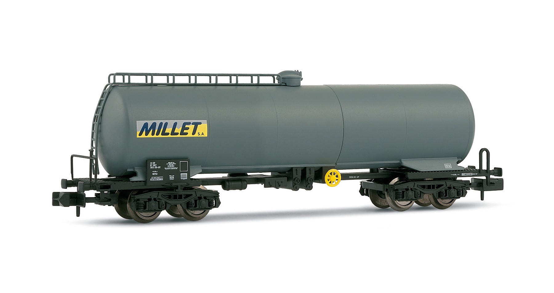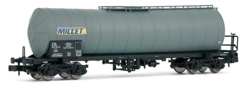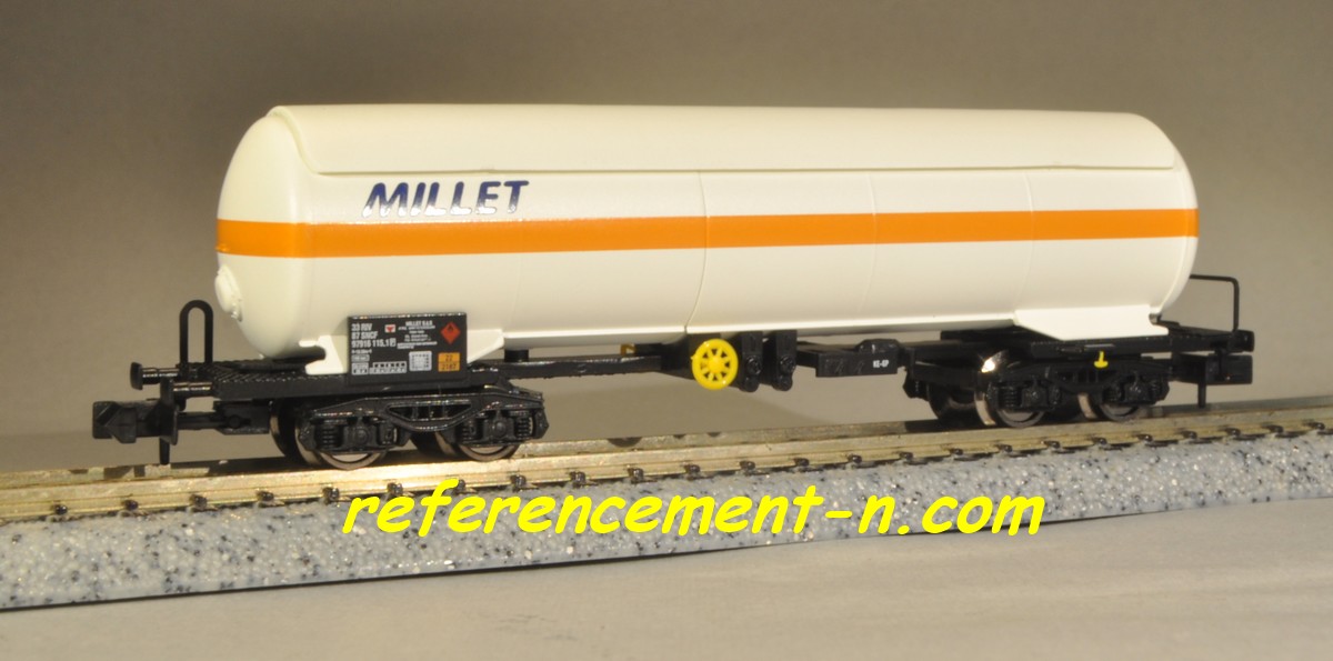 Couleur grise Marquage MILLET Attelage à élongation Comparez la première photo qui a été celle de la promotion de ce nouveau wagon (avec nouveau moule) et la seconde photo qui est celle du wagon réellement vendu réalisé à partir d'un moule ancien Annonce dans Rail Miniature Flash N° 548 de mars 2011 Annonce dans Le Train N° 285 de janvier 2012 |