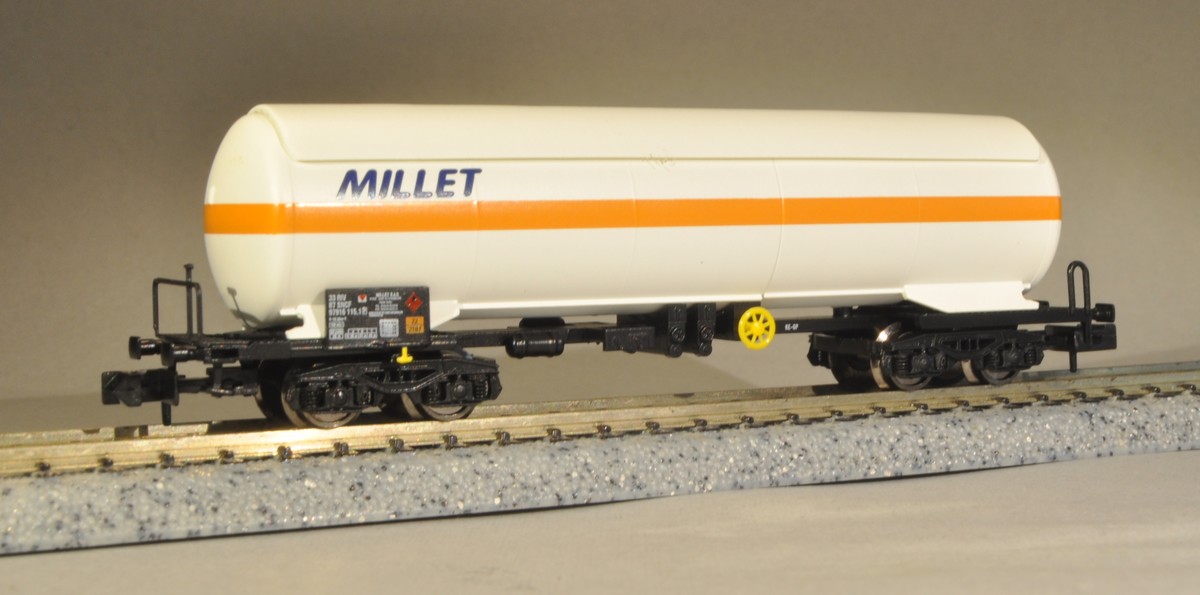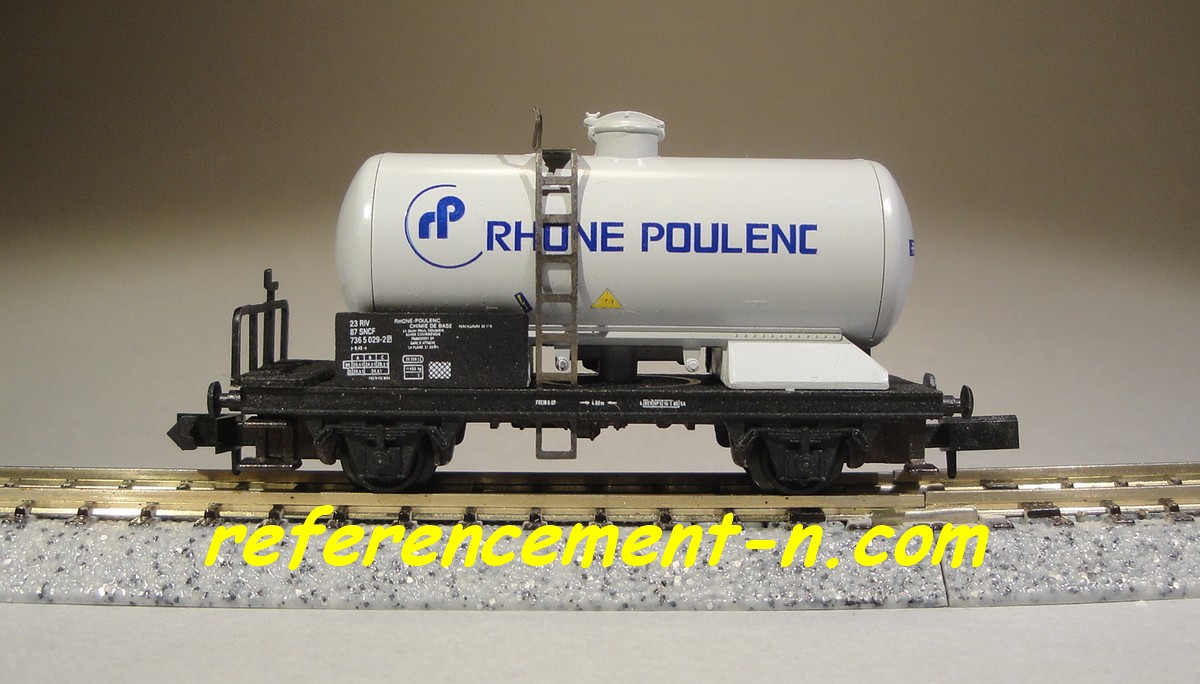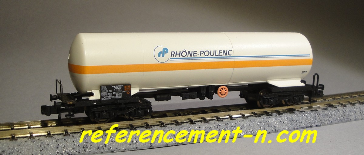 la création du Gruppo Rivarossi en 2001 Couleur blanc bande orange Marquage RHÔNE POULENC Longueur : 100 mm Annonce de la sortie dans Rail Flash Flash N° 431 de février 2001 Présentation Rail Miniature flash N° 438 d'octobre 2001 Annonce dans Voies Ferrées N° 124 de mars/avril 2001 |