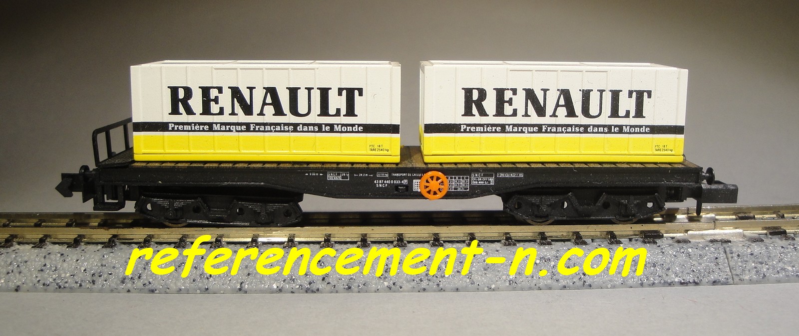 | Description | Wagon type plat multifret 2 essieux porte-conteneurs | |