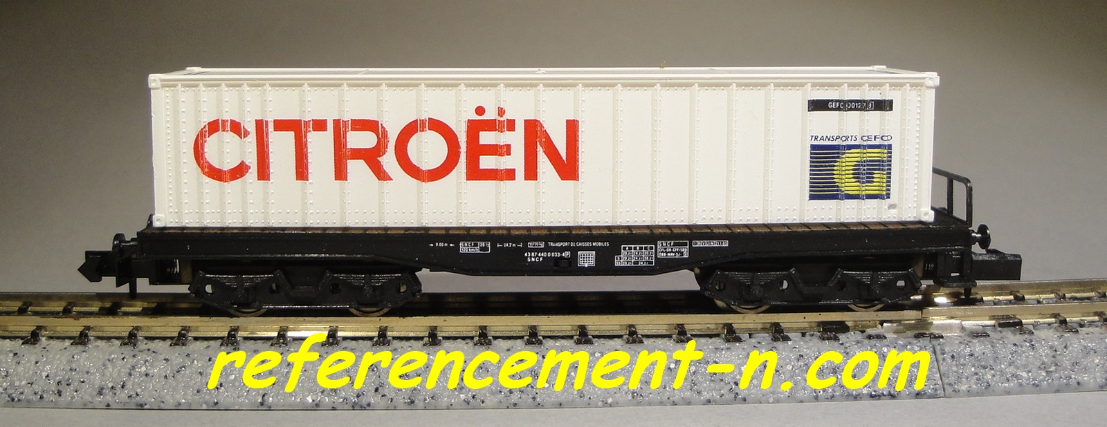 un conteneur CITROËN propriété GEFCO Même numéro que 4951-18 et 4951-25 Présentation Rail Miniature Flash N° 340 de novembre 1992 |