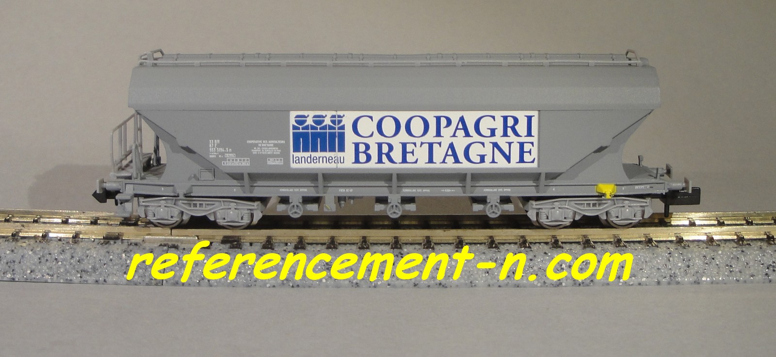 Couleur grise Marquage Coopagri Bretagne Coopérative des Agriculteurs de Bretagne Attelage à élongation Annonce dans Rail Miniature Flash N° 548 de mars 2011 Annonce de la sortie dans Loco Revue N° 773 de décembre 2011 |