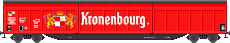 Couleur rouge Marquage Kronenbourg Attelage à élongation Ancien moule Electrotren Longueur : 138 mm Annonce dans Rail Miniature Flash N° 548 de mars 2011 Annonce de la sortie dans Le Train N° 283 de novembre 2011 Annonce de la sortie dans Loco Revue N° 773 de décembre 2011 |