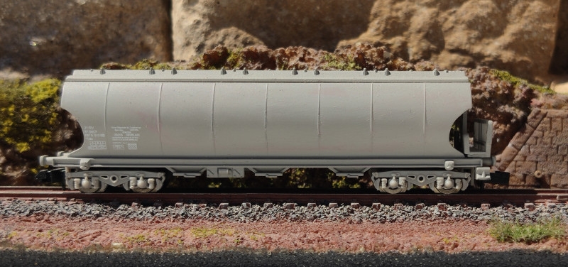 | Description | Wagon transport vrac 2 boggies gris de type Uagpps | |