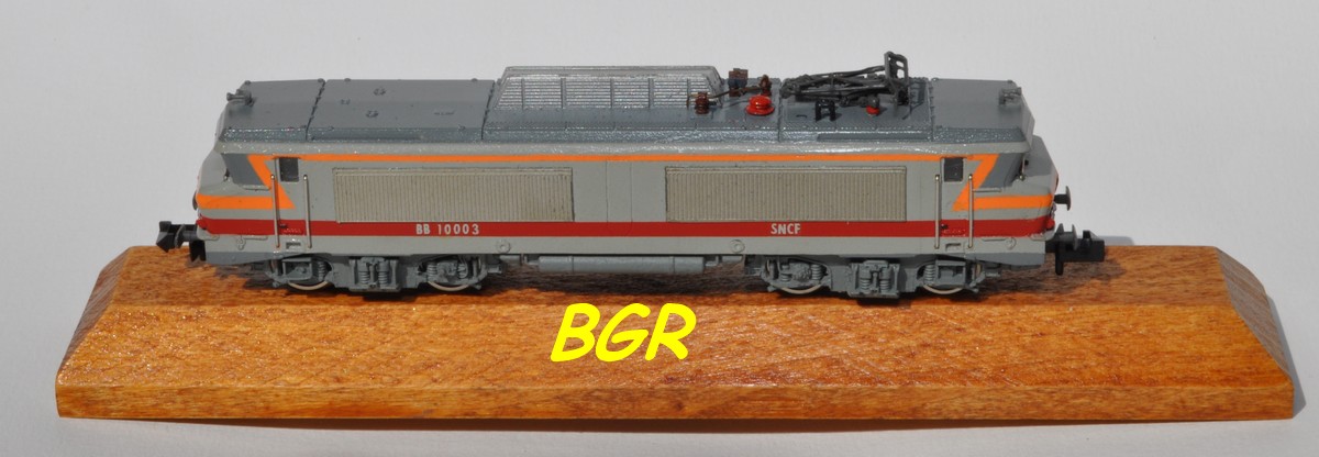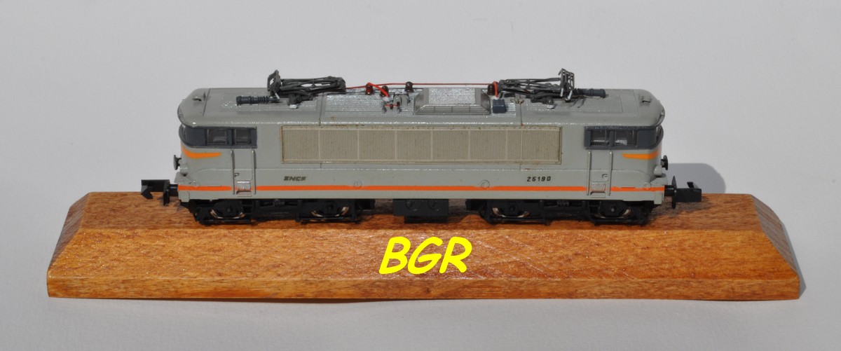 grise et blanche Réalisée sur la base d'une locomotive Arnold BB 25200 Cette livrée devait être produite par Arnold en 2004 mais la production d'Arnold Germany a cessé avant la sortie du modèle. Longueur : 101 mm Historique du modèle réel |