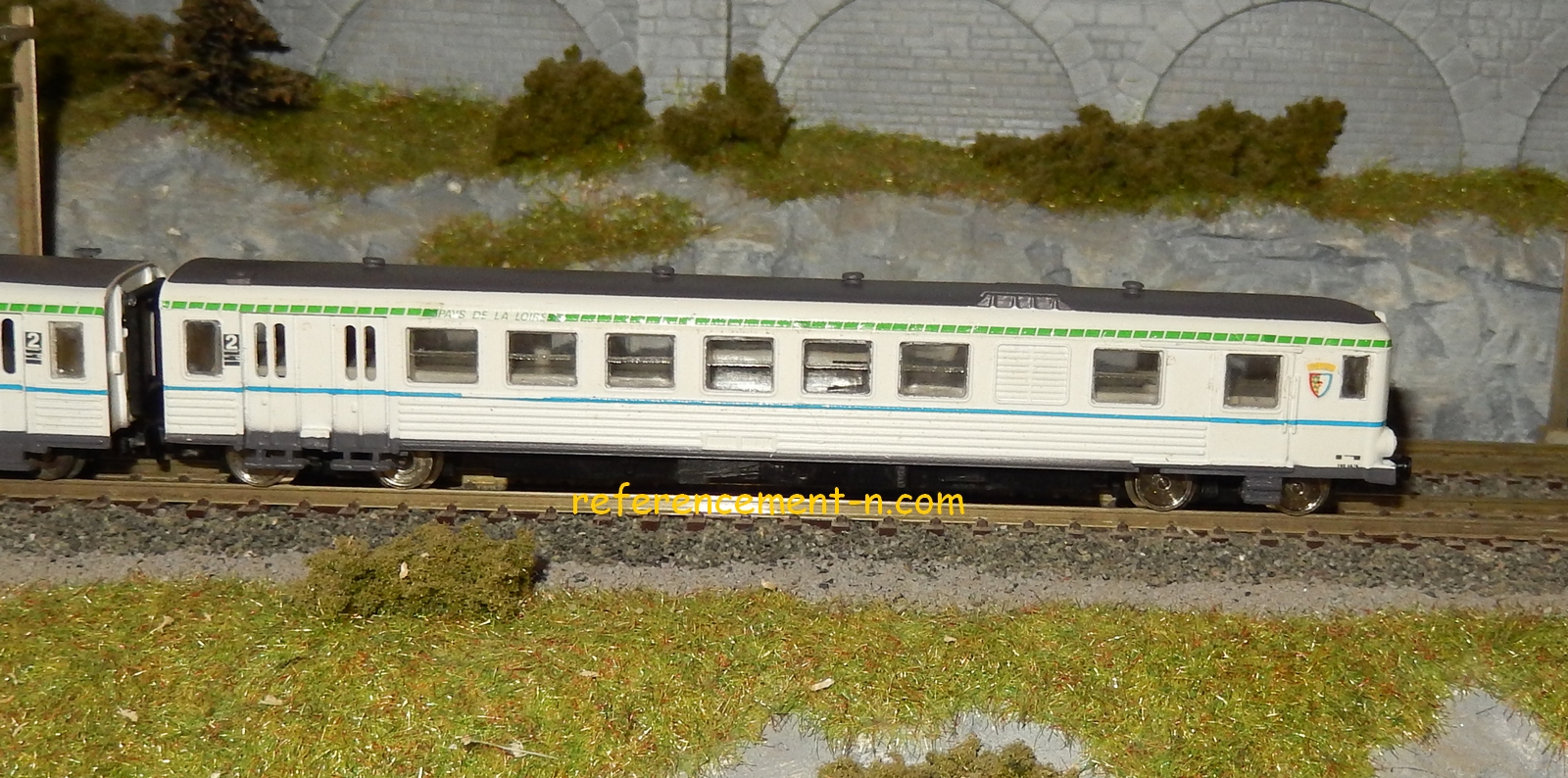 Elément Automoteur Double Modèle réalisé à partir d'une EAD Artrain ainsi que de décalcomanies Carpena. Cette livrée blanche avec bandes vertes et bleues inspirée de la livrée des tramways de Nantes a été surnommée Ambulance. 21 autorails ont porté cette livrées de 1985 jusqu'à modernisation début des années 80. Historique du modèle réel |