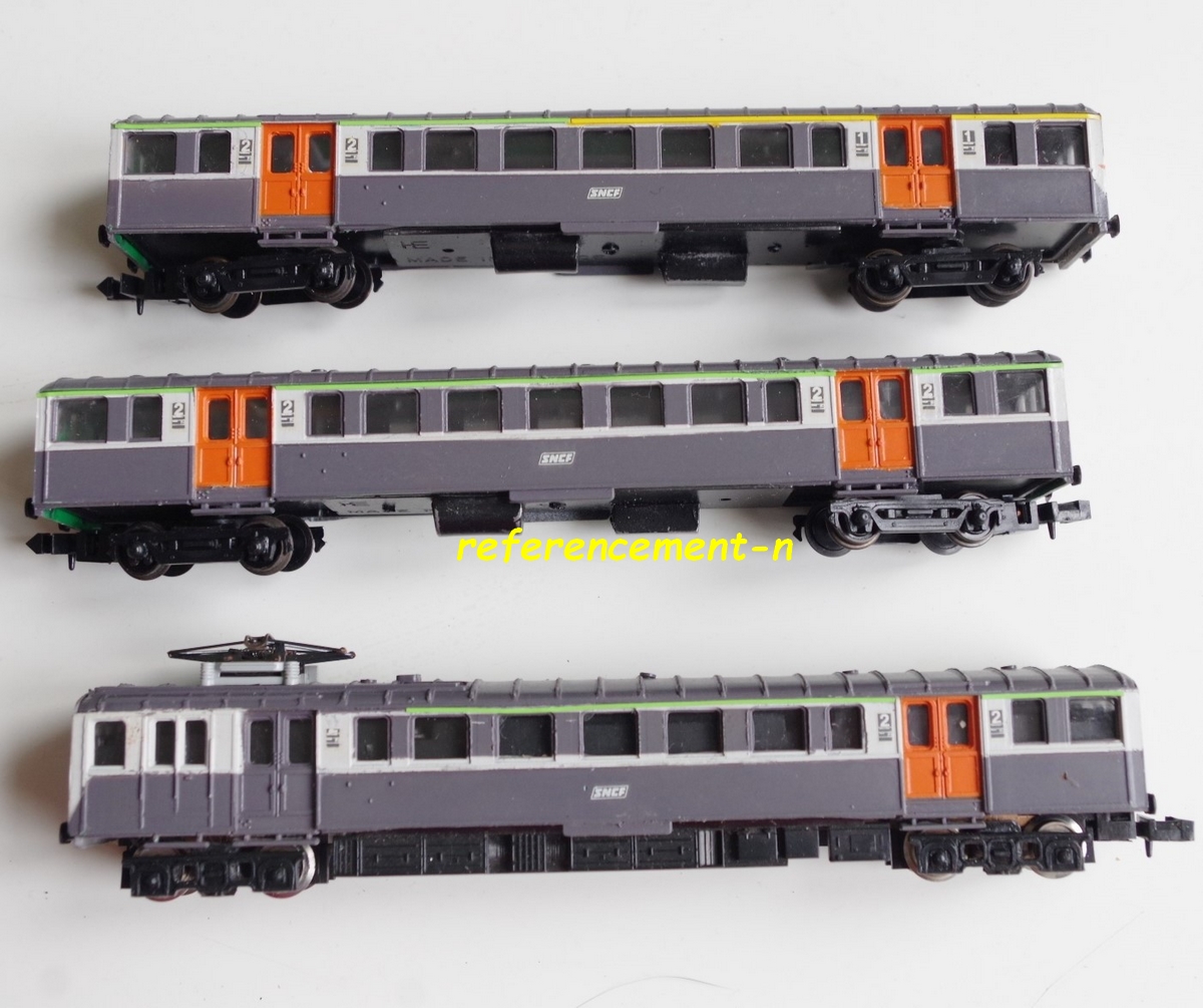 électrique 1500V type Z 4100 avec deux remorques Rames construites pour le réseau P.O. (Paris-Orléans) à 87 exemplaires entre 1925 et 1936 : Z 23101 à Z 23187 Puis numérortées Z 4101 à Z 4187 à la SNCF Quelques rames furent modifiées en 1979 pour réaliser des navettes entre Orléans et Tours. Elles adoptèrent une décoration de type "Corail" |
