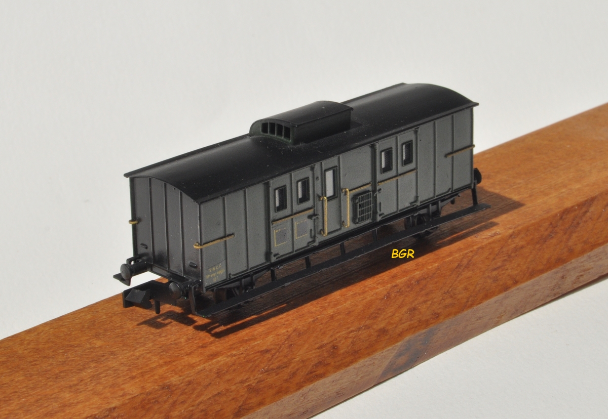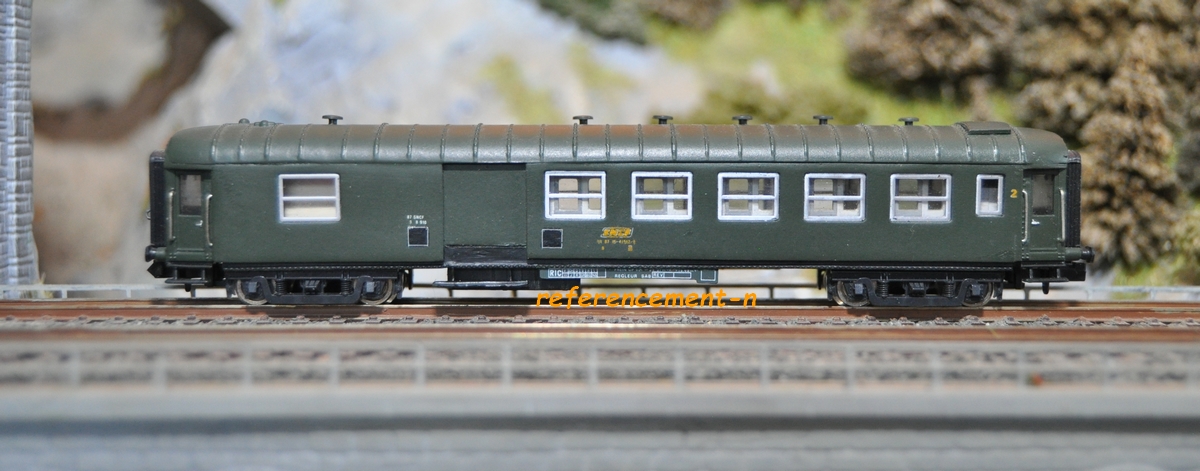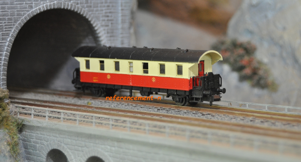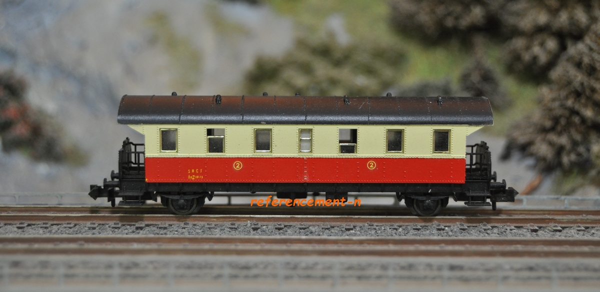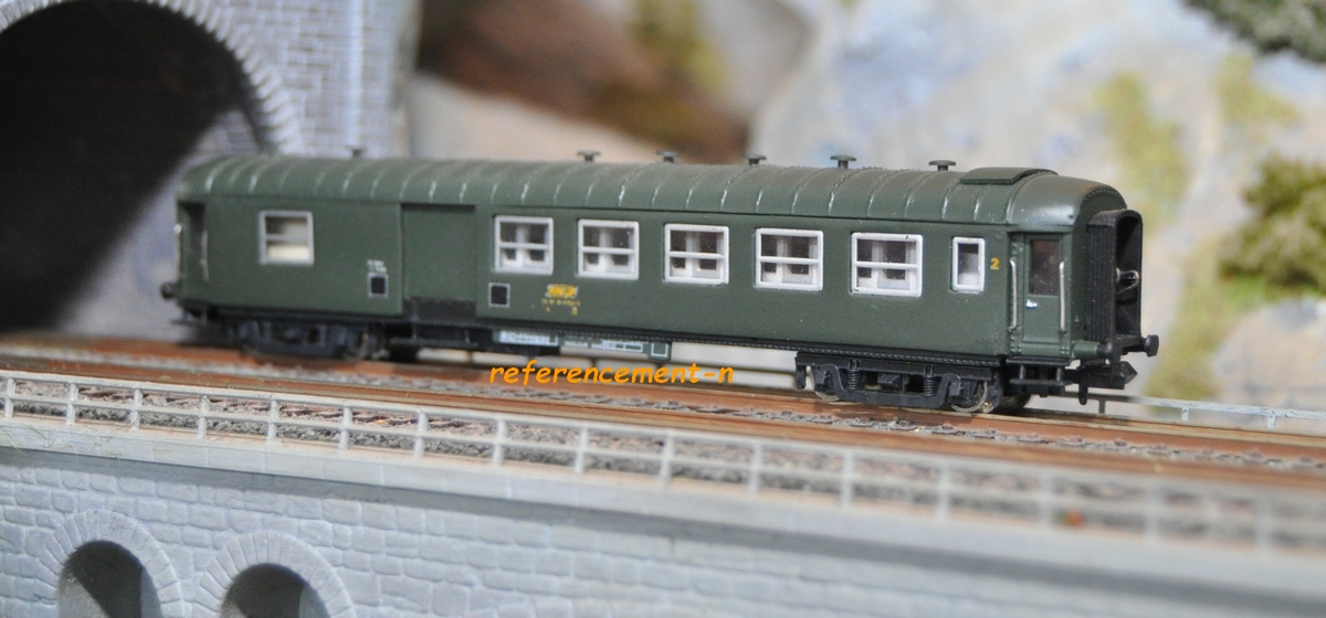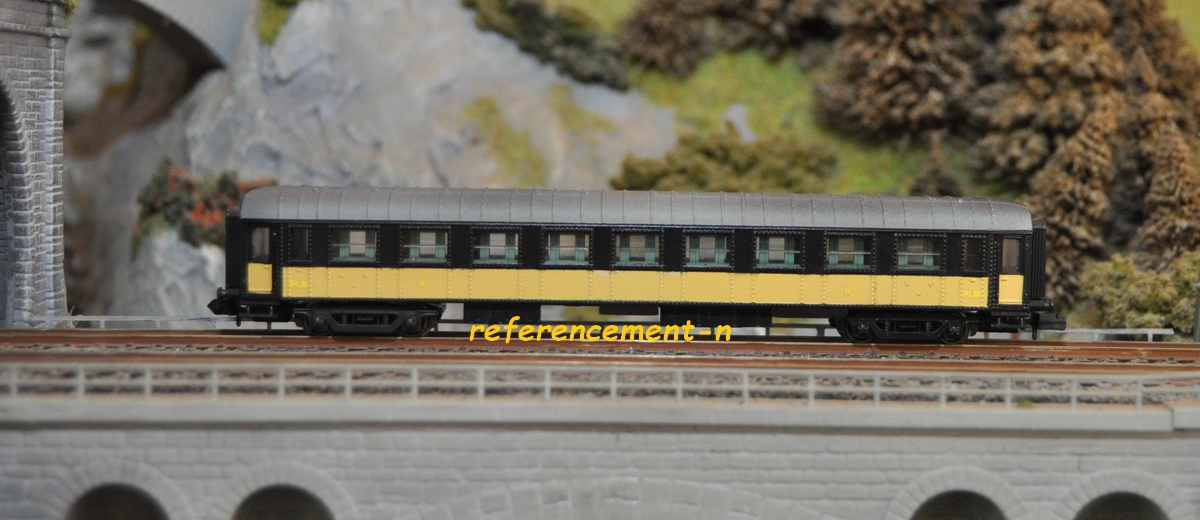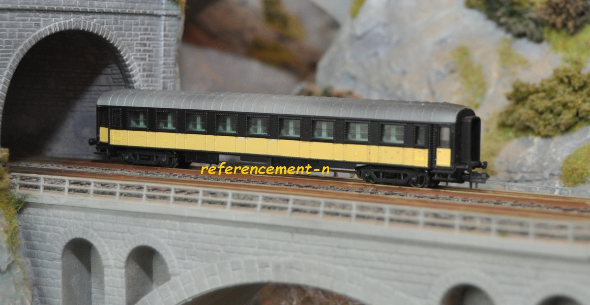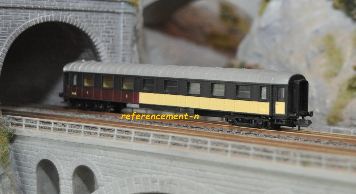 Livrée brun foncé et toit noir Wagon réalisé antérieurement à la sortie du modèle Arnold référencé 4497 en 1994 |