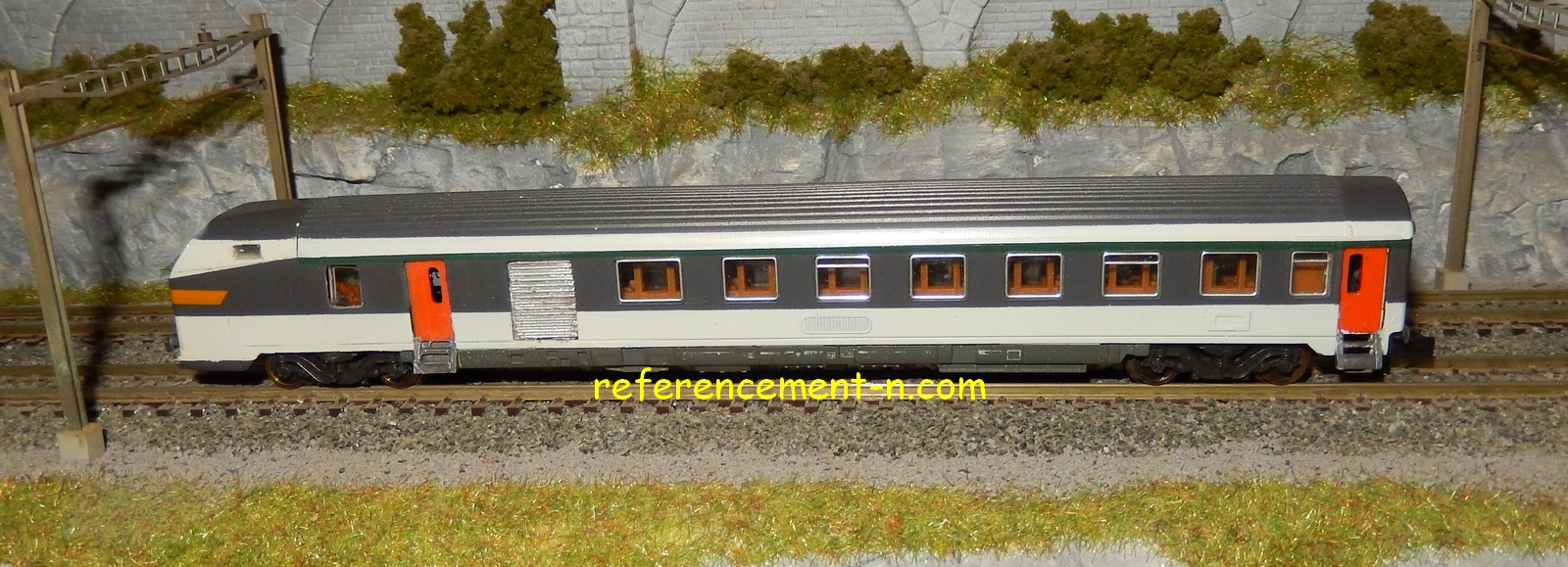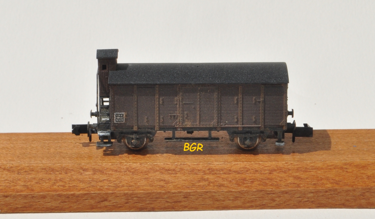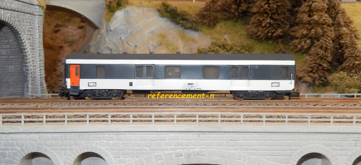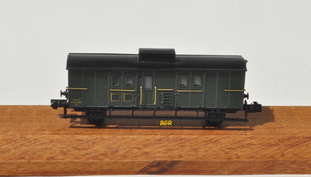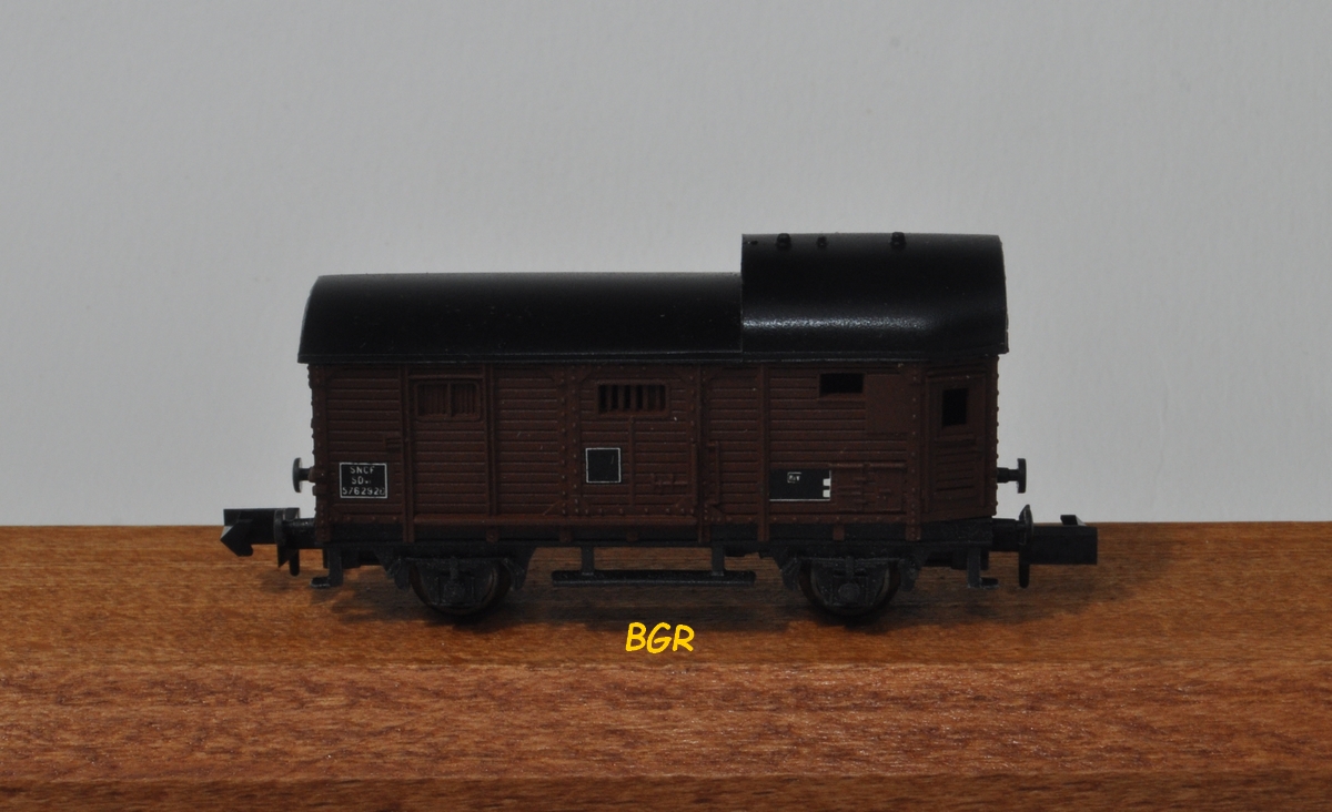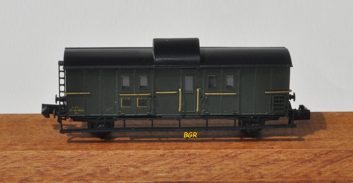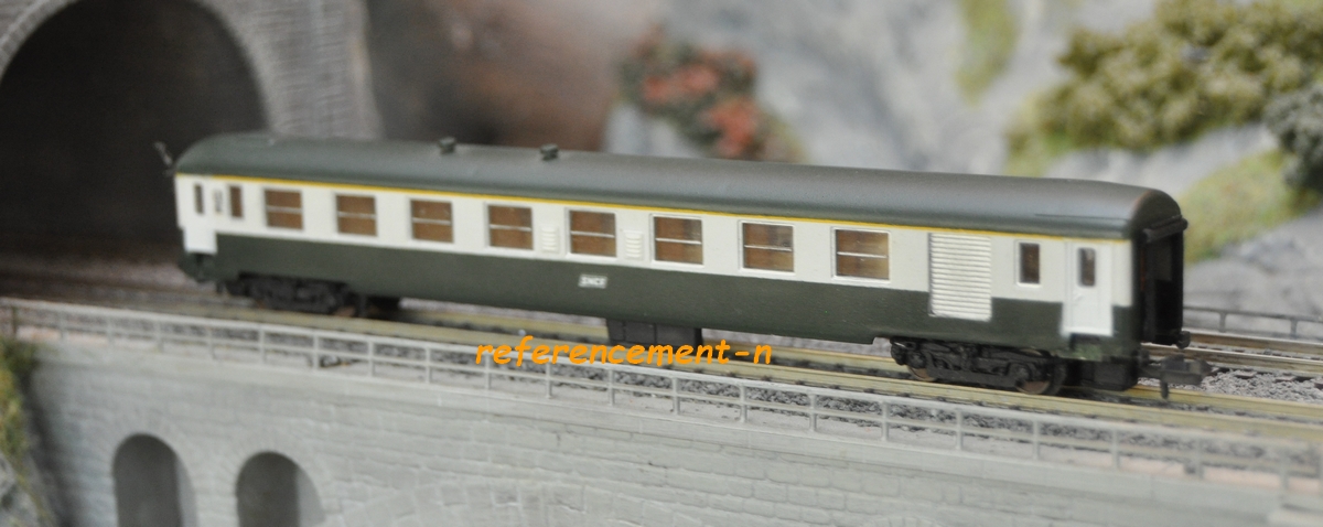 Livrée brun foncé et toit noir Wagon réalisé antérieurement à la sortie du modèle Arnold référencé 4497 en 1994 |