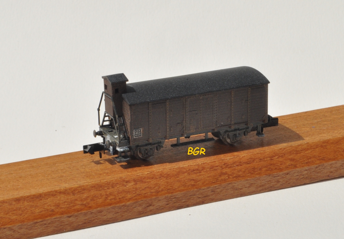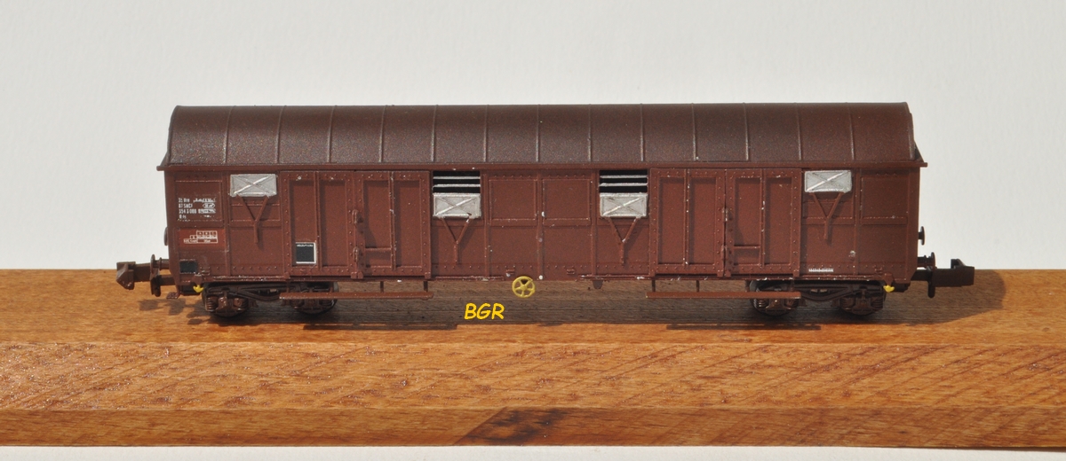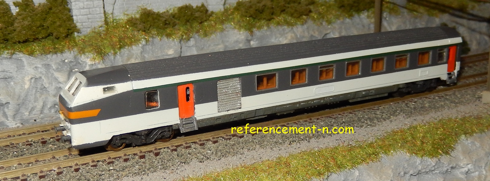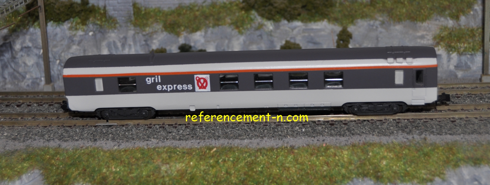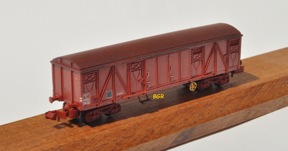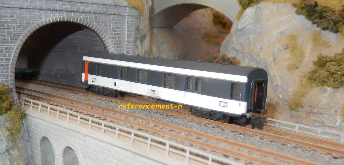 Livrée brun foncé et toit noir Wagon réalisé antérieurement à la sortie du modèle Arnold référencé 4497 en 1994 |