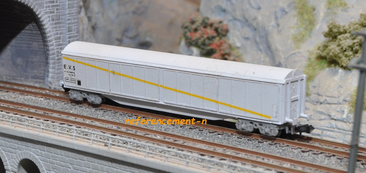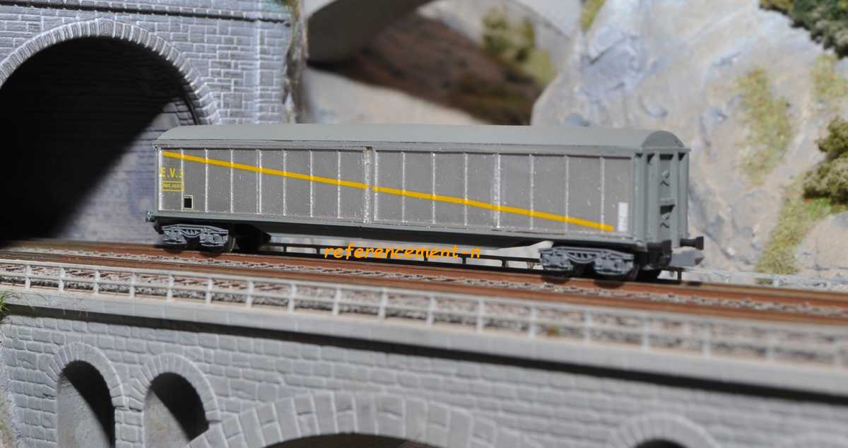 Roco Couleur gris clair, toit blanc, châssis et bogies gris clair Marquage EVS en jaune et bande jaune en diagonale |