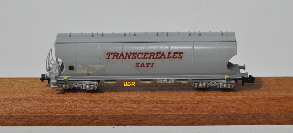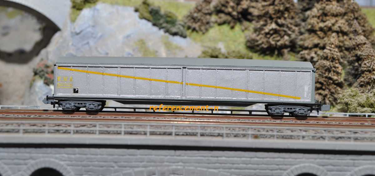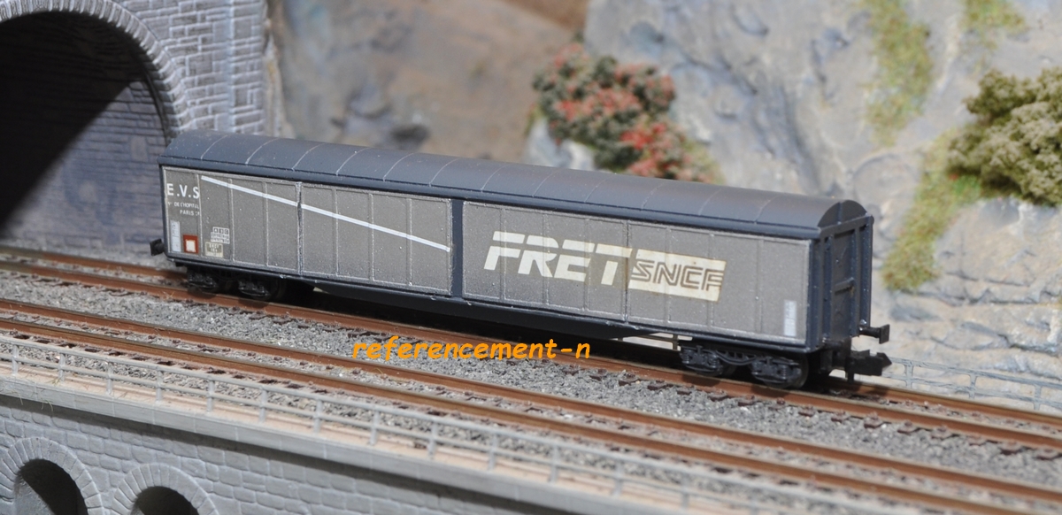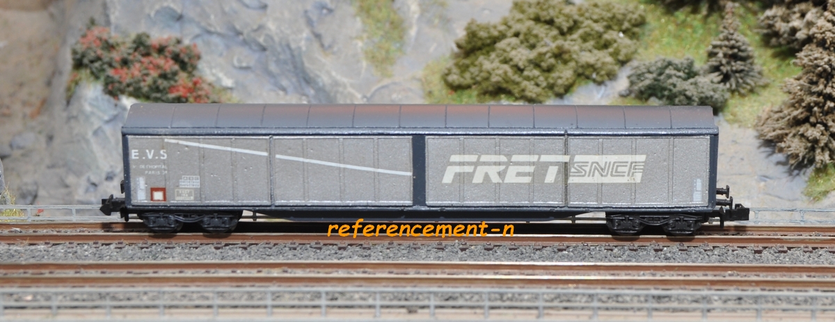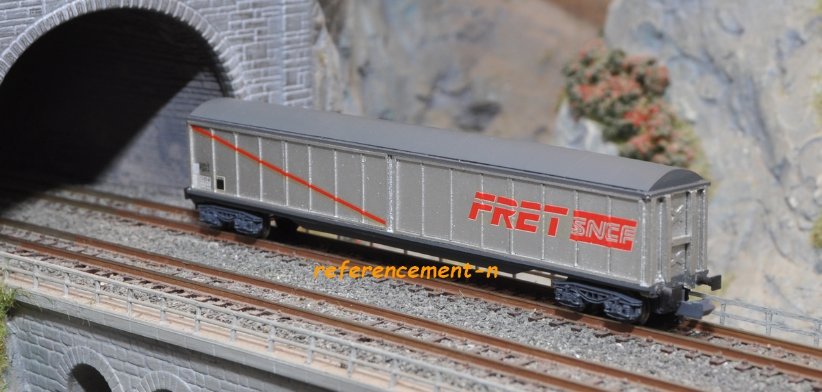 toit gris avec châssis noir Marquage STEF en noir et rouge Base wagon Arnold réf. 4224 |