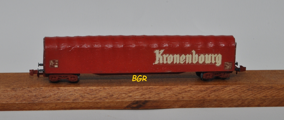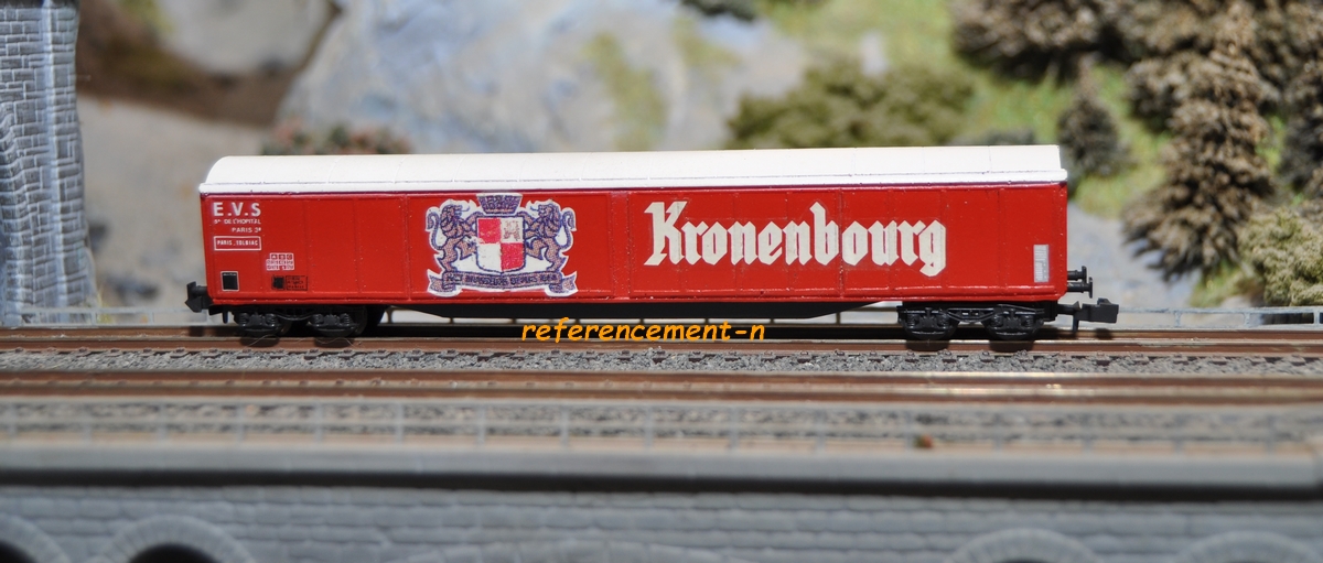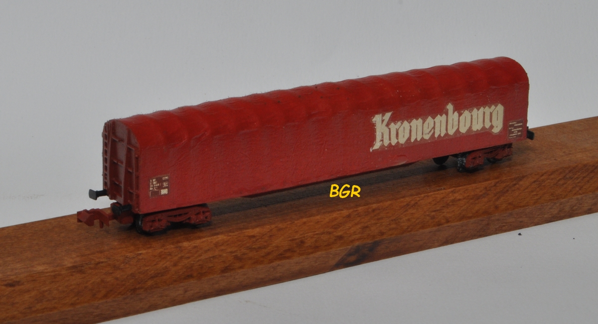 châssis brun UIC Marquage Kronenbourg en blanc Wagon en résine Bogies Roco |