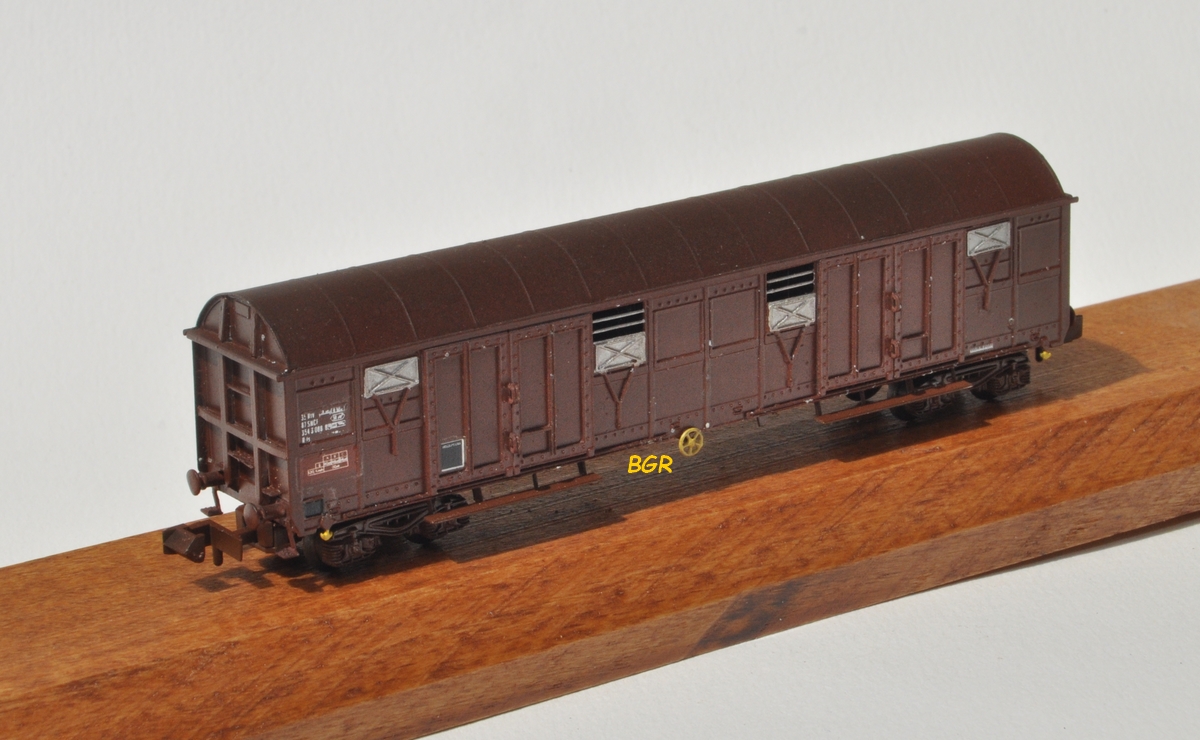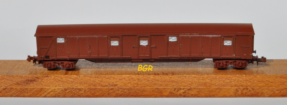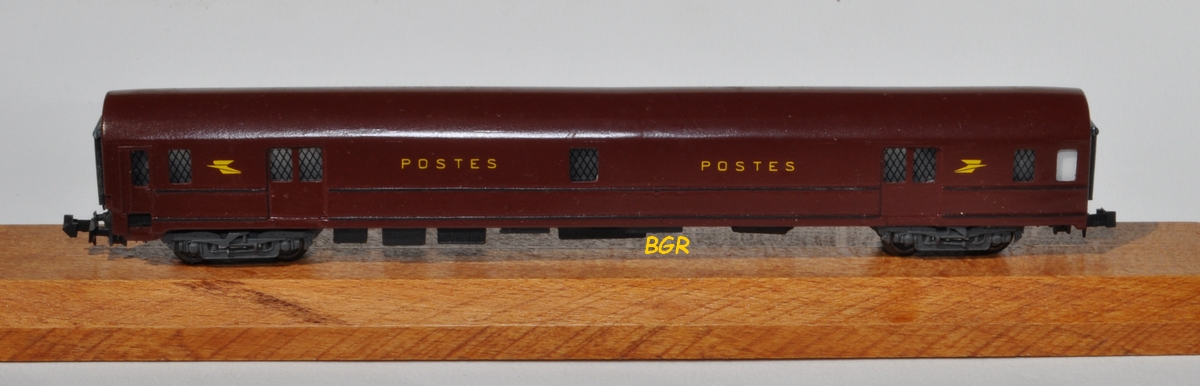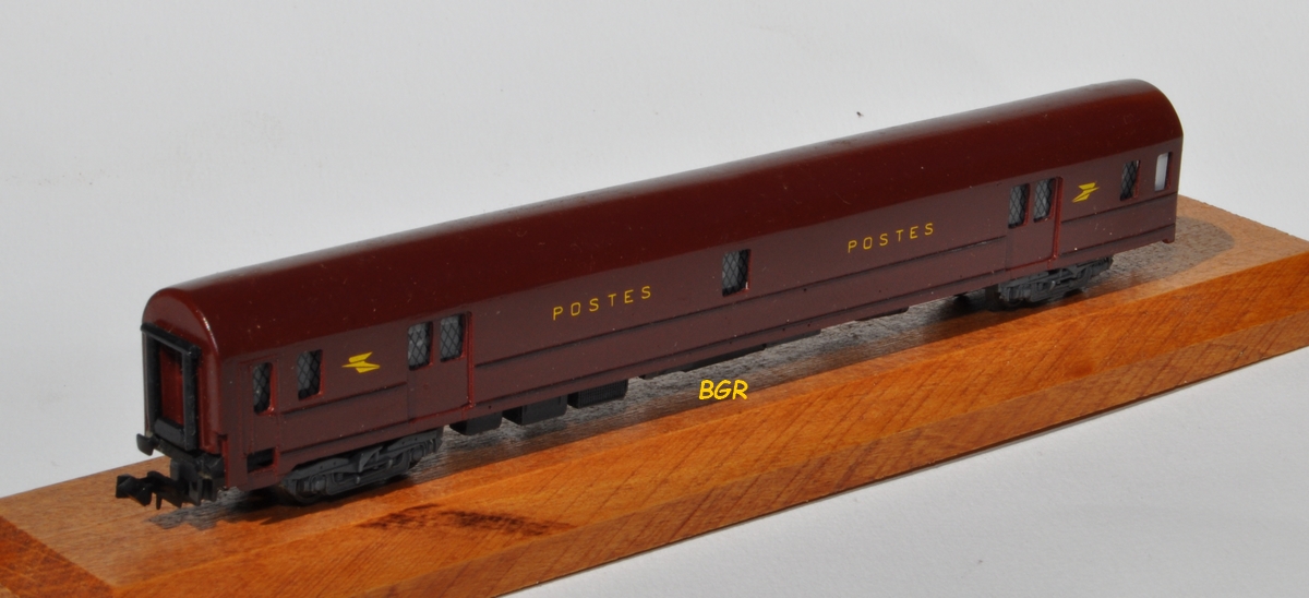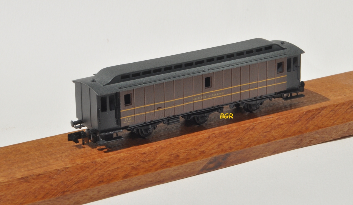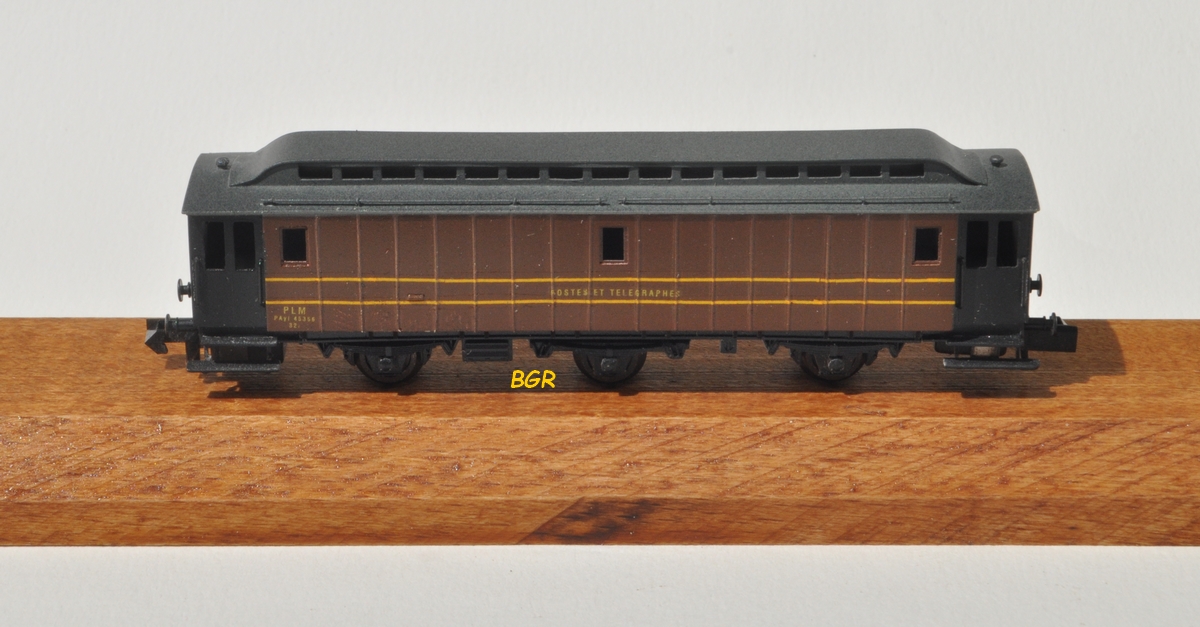 Livrée Brun Poste avec toit noir Réseau PLM Marquages POSTES ET TELEGRAPHES en jaune Modèle en laiton sur châssis Roco modifié |