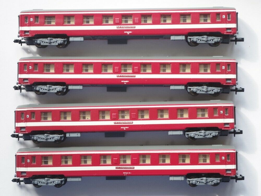 Voitures réalisée sur base de voitures Arnold référence 3762 Livrée rouge et blanche Une voiture est transformée en Voiture fourgon Logos Le Capitole rapportés réalisés en laiton par gravure chimique Trois rames numérotées ont été réalisées |