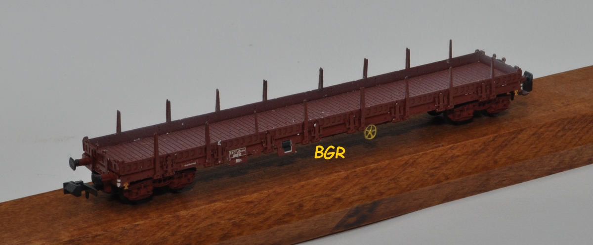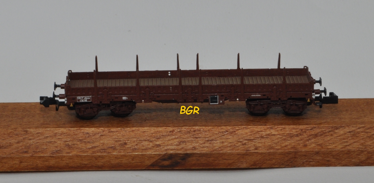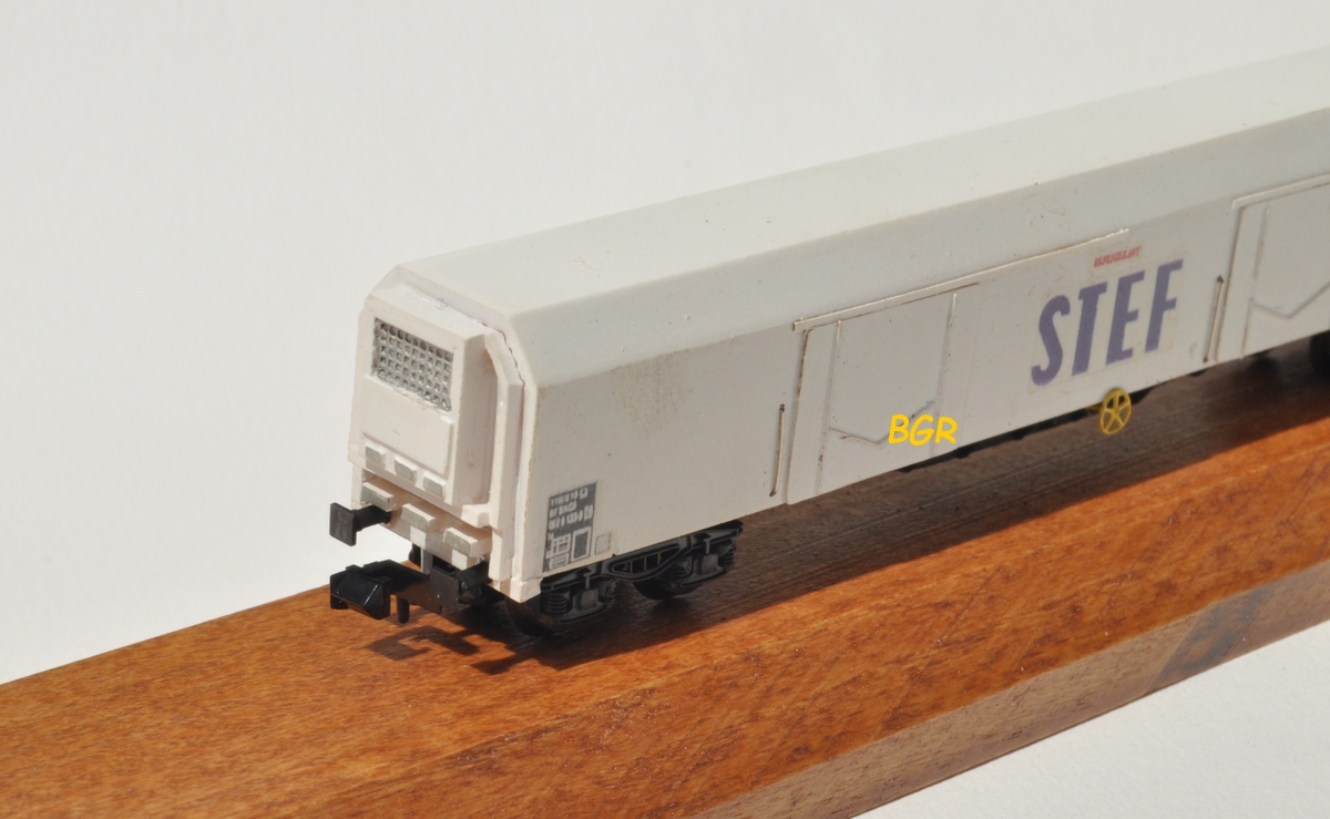 châssis noir Marquage STEF en noir Caisse et châssis en résine Bogies Roco Echelles prises sur un wagon du commerce |