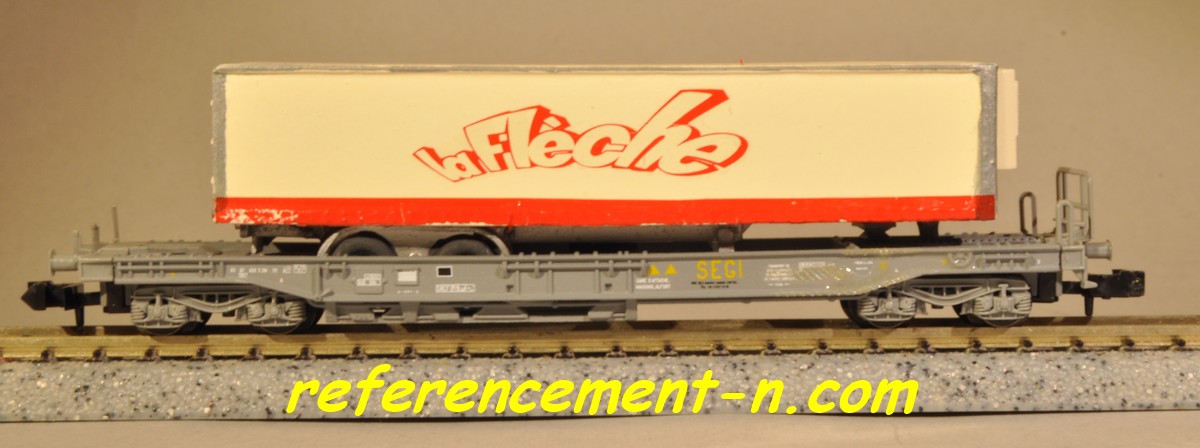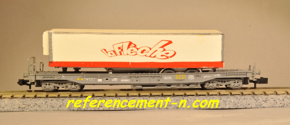 Wagon Poche 2 boggies gris chargé 1 semi remorque TRAILOR sur base wagon SEGI SNCF |