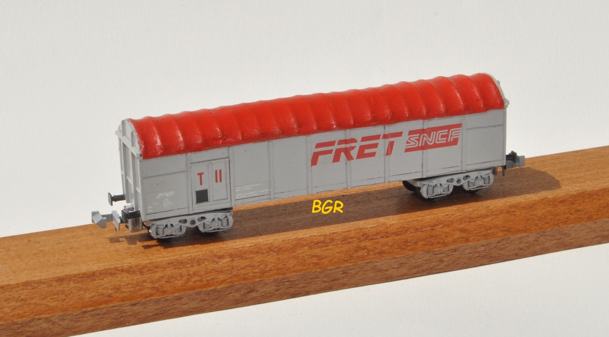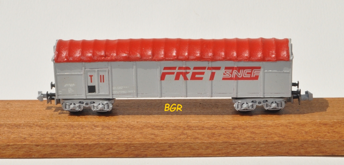 gris clair Marquage T II et FRET SNCF en rouge Wagon en résine Bogies Roco |