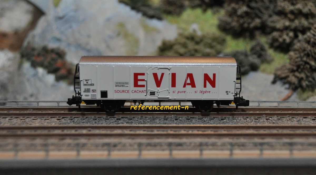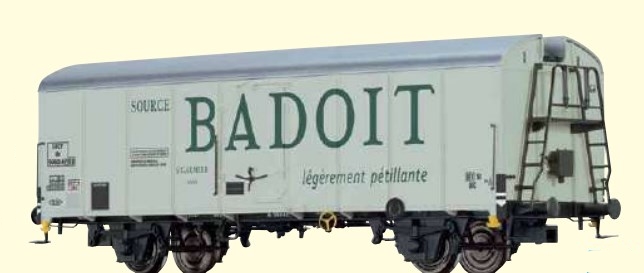 et toit argenté Marquage Source BADOIT sur une face et EVIAN sur l'autre face Attelages courts NEM à élongation Longueur : 73,3 mm |