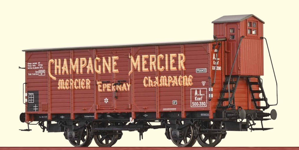 toit noir Marquage CHAMPAGNE MERCIER EPERNAY Attelages courts à élongation Longueur : 60,0 mm Annonce de la sortie dans LOco Revue N° 870 de janvier 2020 |