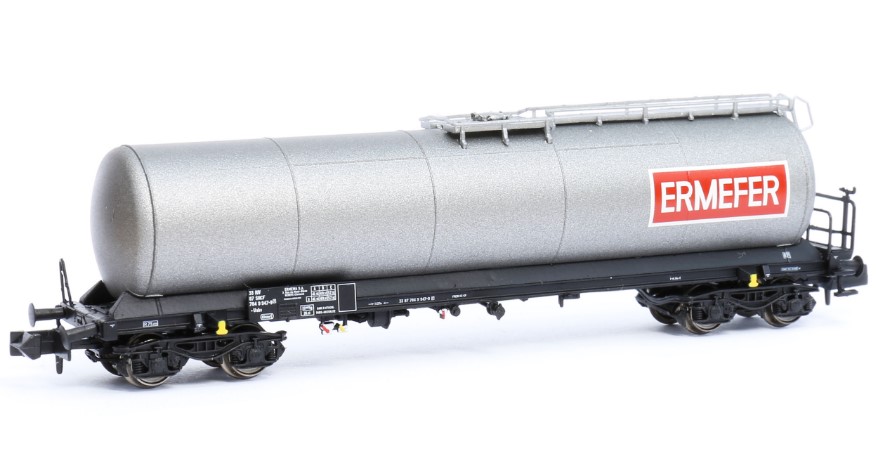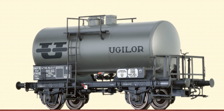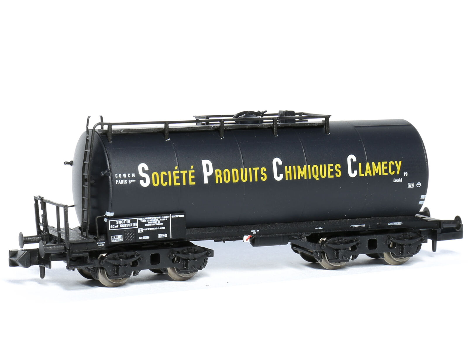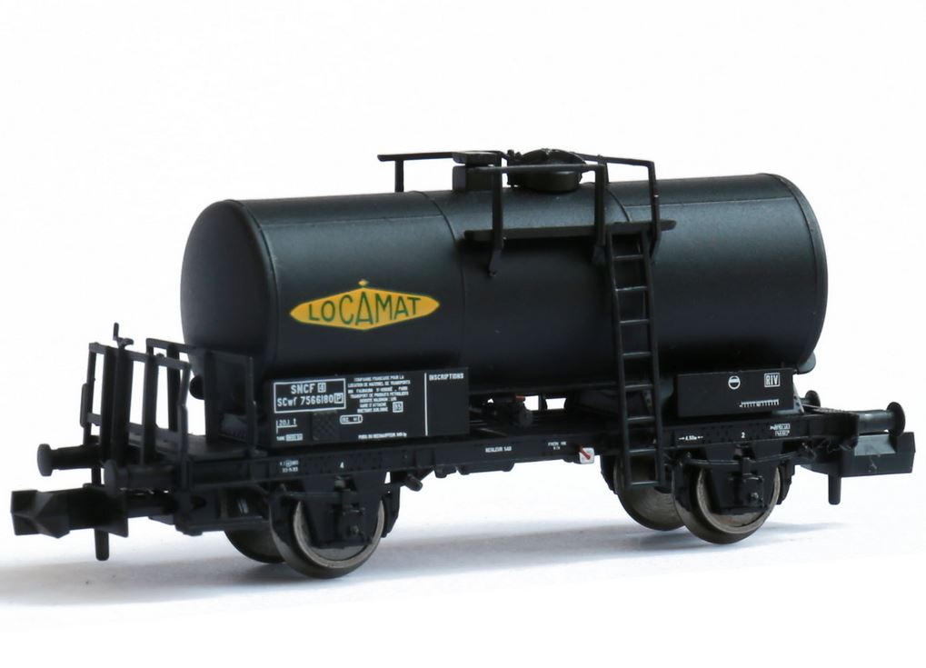 | Description | Wagon citerne à bogies et passerelle serre freins type SCwf | |