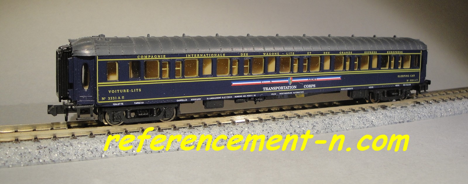 en bandeau sur les deux côtés des voitures CIWL :
