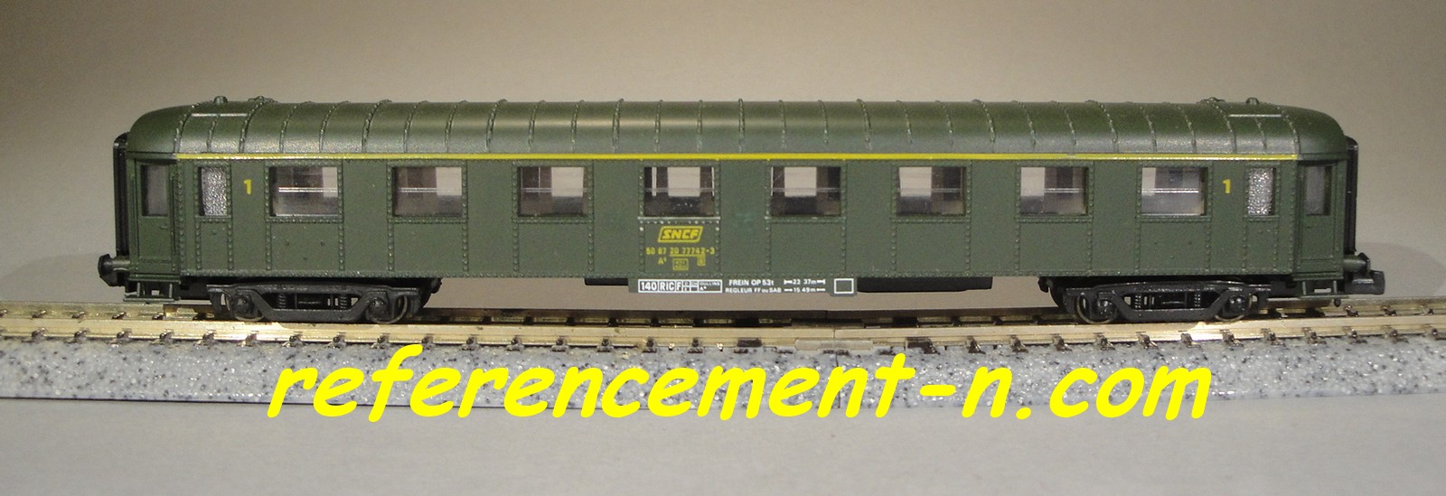 | Description | Voiture voyageurs A9 UIC type Y verte 1.Cl. bogies Y24A1S | |