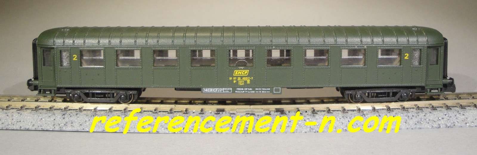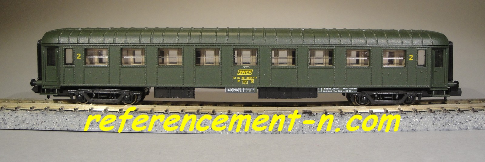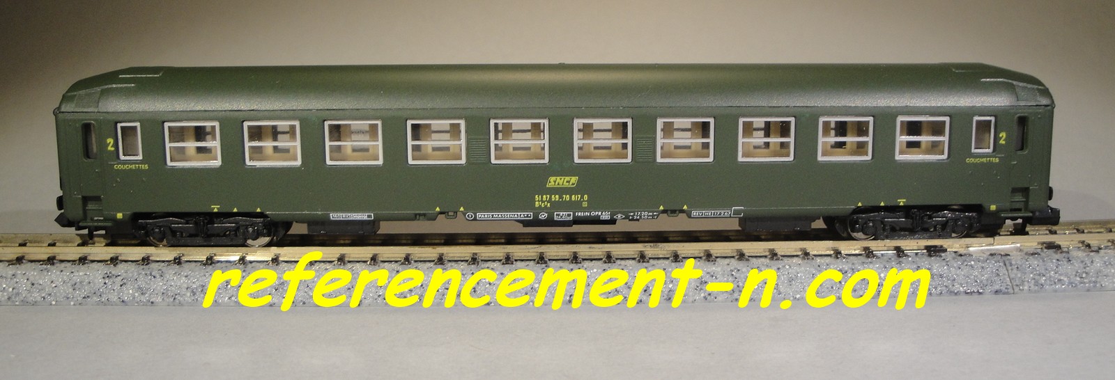 | Description | Voiture voyageurs B9C9X 2.Cl. Couchettes toit bas | |