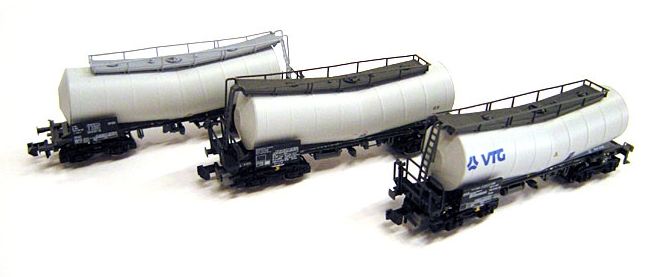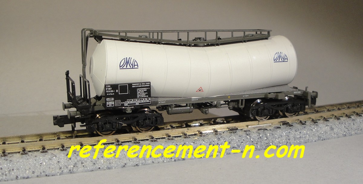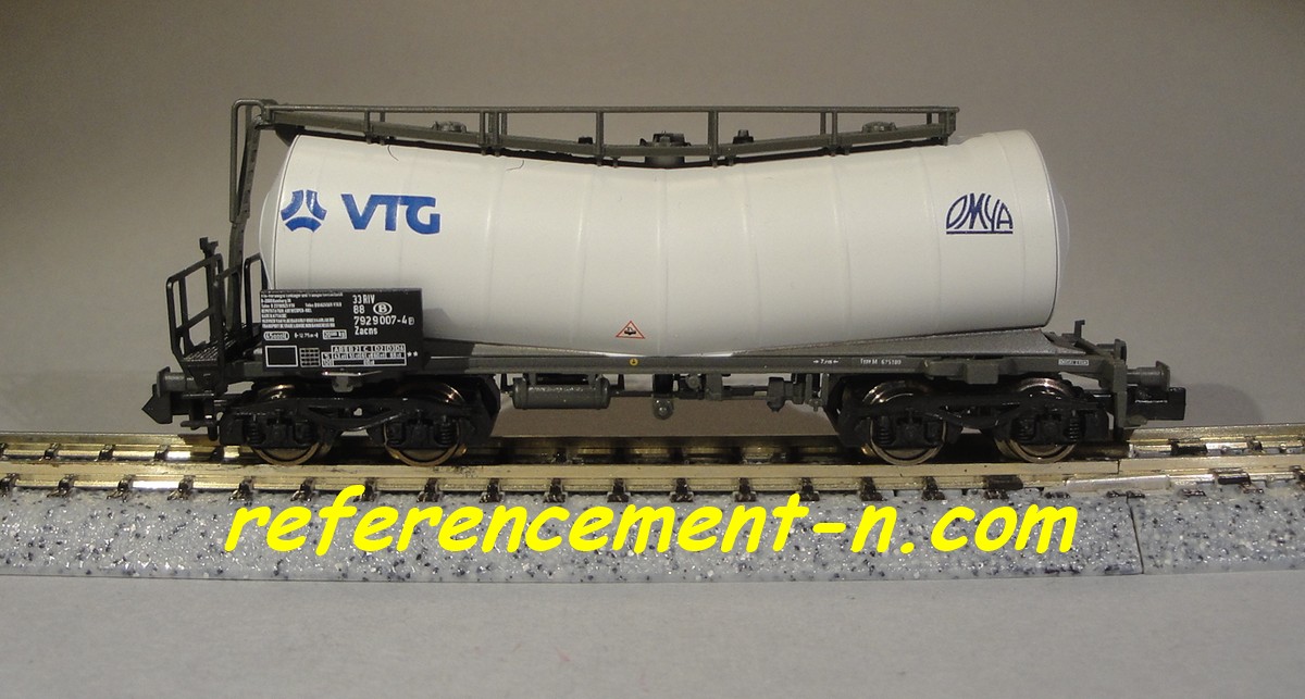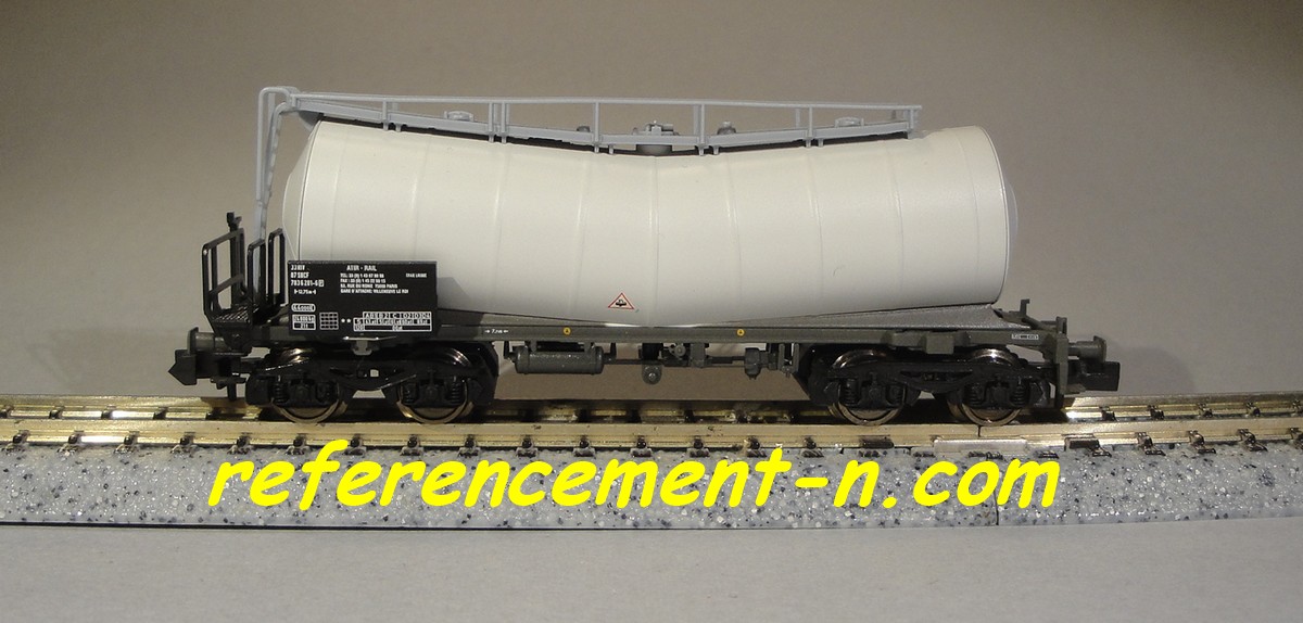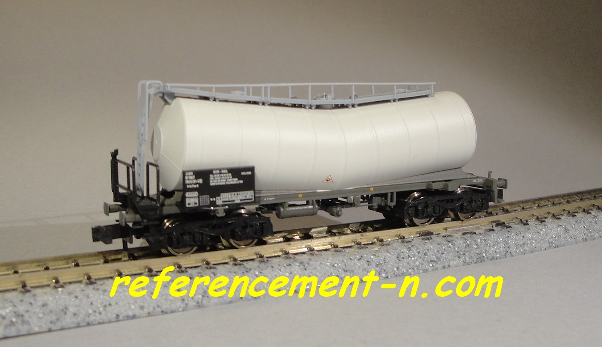 Wagon affecté au transport de craie liquide Un wagon est immatriculé à la SNCF, un second wagon est immatriculé en Allemagne (D-ERMD) et le dernier en Belgique (B-VTGD) Attelages à élongation longueur : 245 mm |