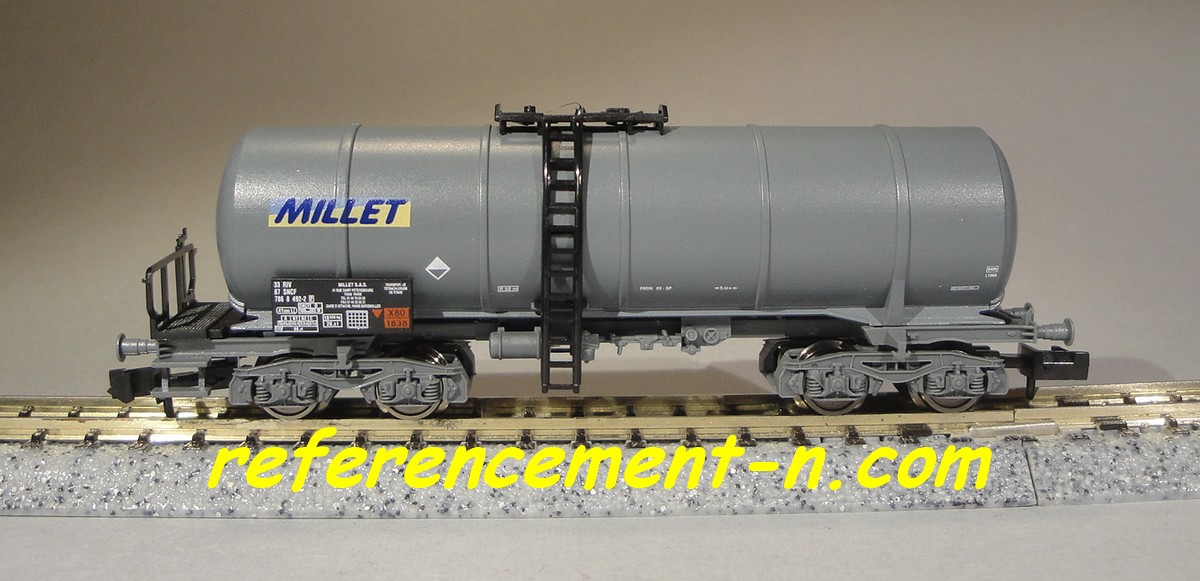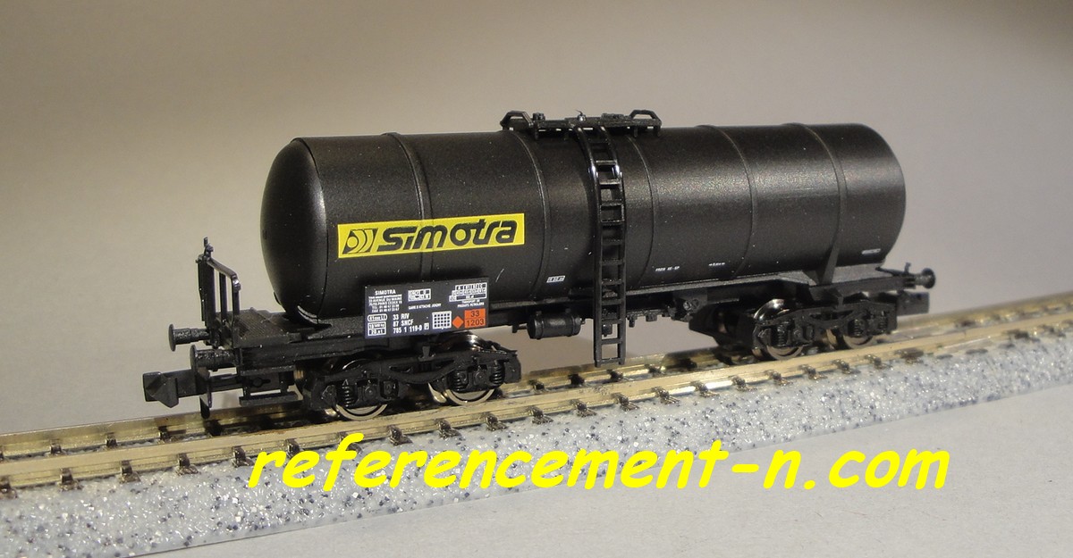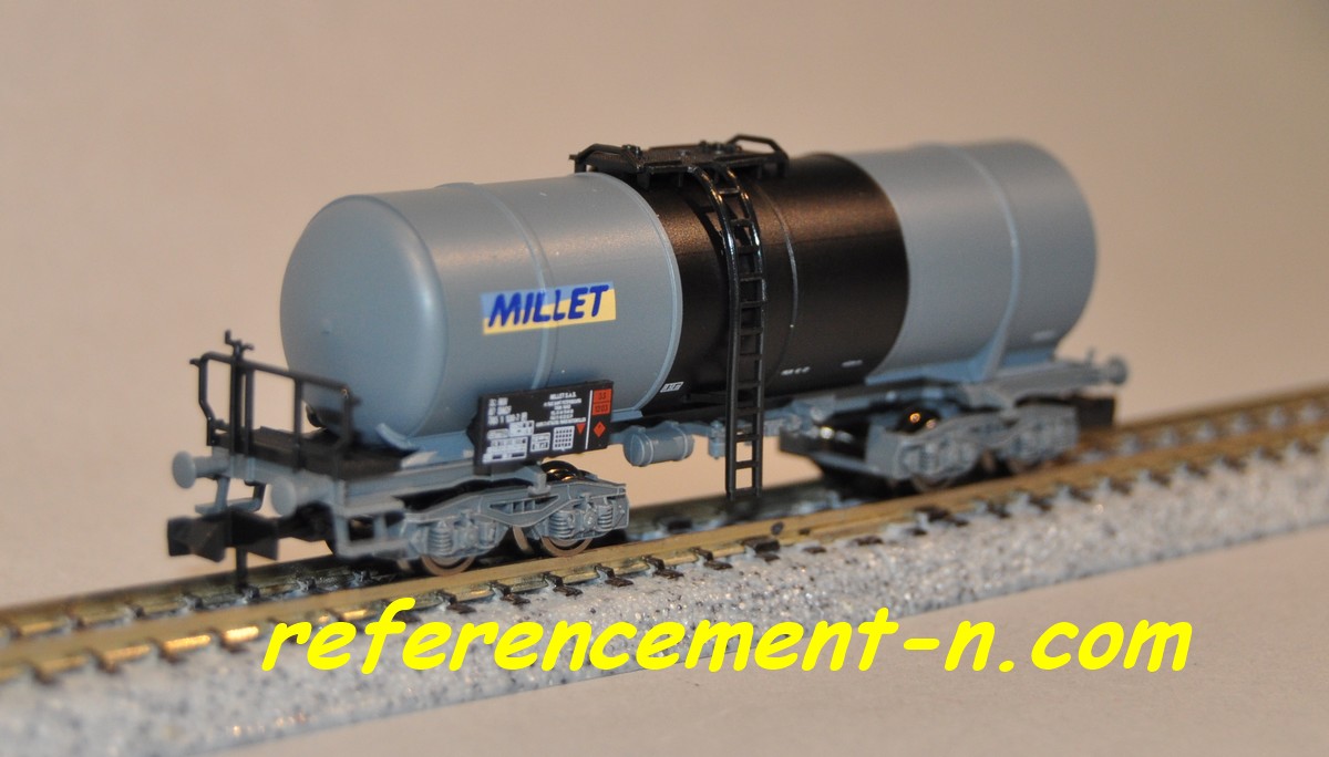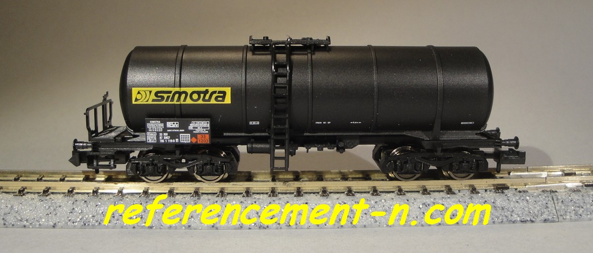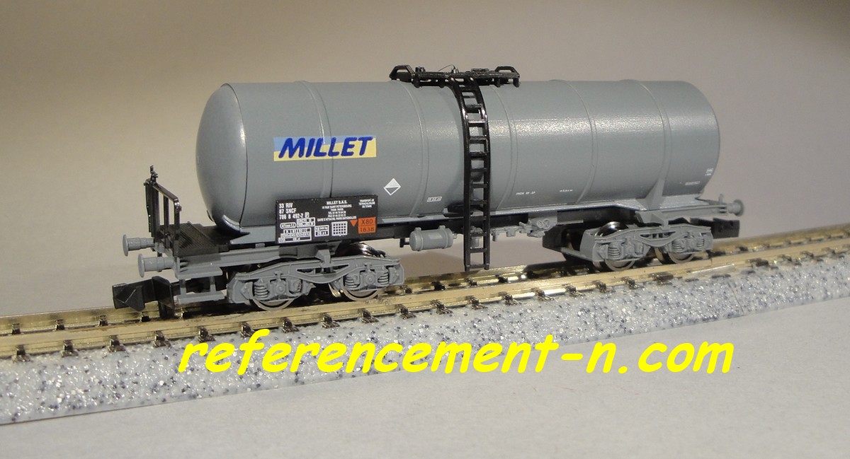 Wagon affecté au transport de craie liquide Un wagon est immatriculé à la SNCF, un second wagon est immatriculé en Allemagne (D-ERMD) et le dernier en Belgique (B-VTGD) Attelages à élongation longueur : 245 mm |