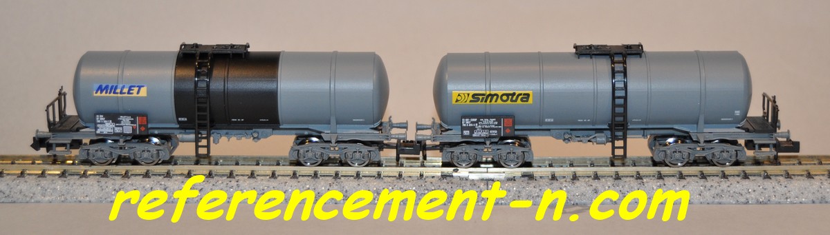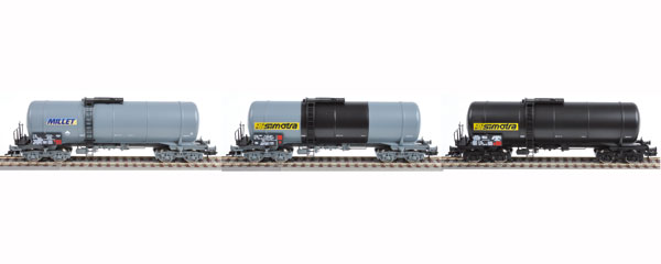 FL736001 Les 3 wagons citernes avec marquages Millet et Simotra déjà sortis en coffret en 2010 sous la référence 848005 Attelages à élongation Longueur : 380 mm Annonce de la sortie dans Le Train N° 271 de novembre 2010 |