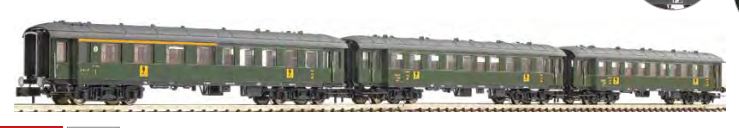 Composition de 2 voitures 2.Cl. et d'une voiture 1.Cl. Reprise de moules Roco Longueur : 393 mm Annonce de la sortie dans Loco Revue N° 756 de juillet 2010 Annonce de la sortie dans Rail Miniature Flash N° 544 de novembre 2010 Annonce de la sortie dans Le Train N° 271 de novembre 2010 | |
