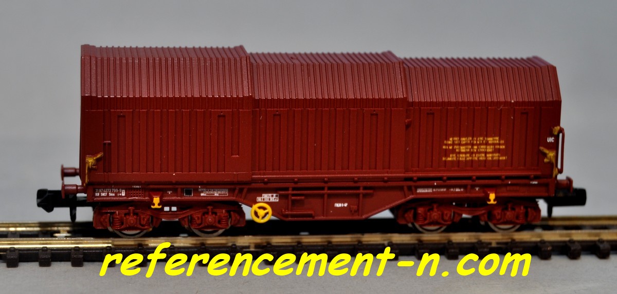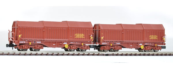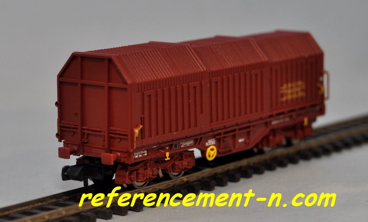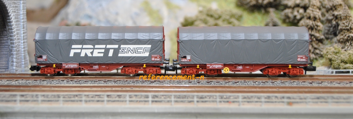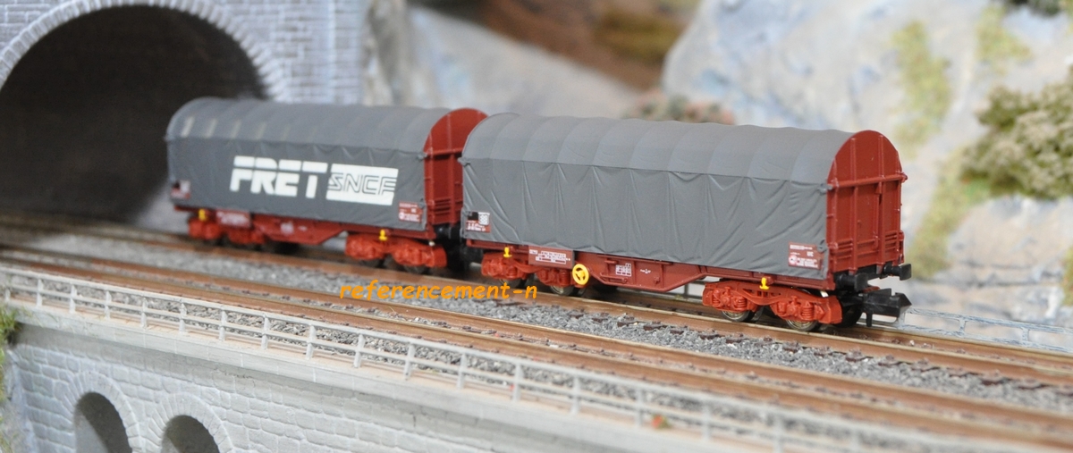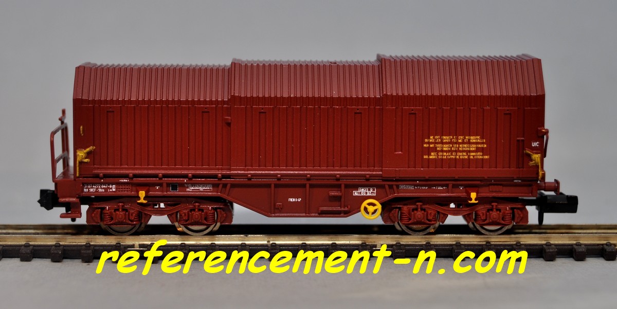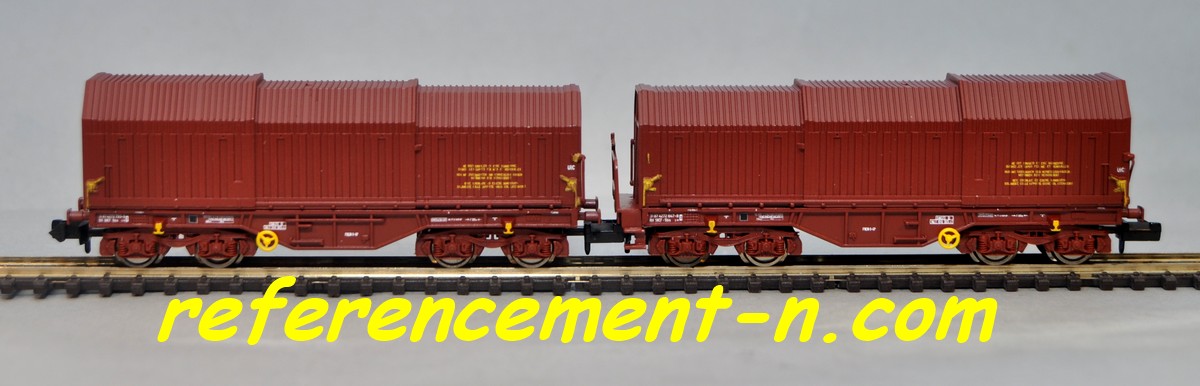 transport de bobine des tôles devant être protégées des intempéries Châssis brun et bâche grise Un wagon avec plateforme et bâche marquée FRET SNCF, un second sans plateforme ni marquage de bâche Attelages courts à élongation Longueur totale : 150 mm Annonce dans Loco Revue N° 764 de mars 2011 Annonce dans Rail Miniature Flash N° 548 de mars 2011 Annonce de la sortie dans Le Train N° 283 de novembre 2011 Annonce de la sortie dans Loco Revue N° 773 de décembre 2011 |