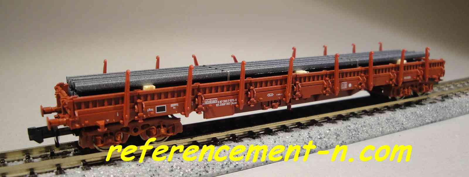 Chargement de poutrelles Attelages à élongation Longueur : 124 mm Annonce dans Le Train N° 270 de septembre 2010 Annonce dans Rail Miniature Flash N° 536 de mars 2010 Annonce dans Loco Revue N° 760 de novembre 2010 |