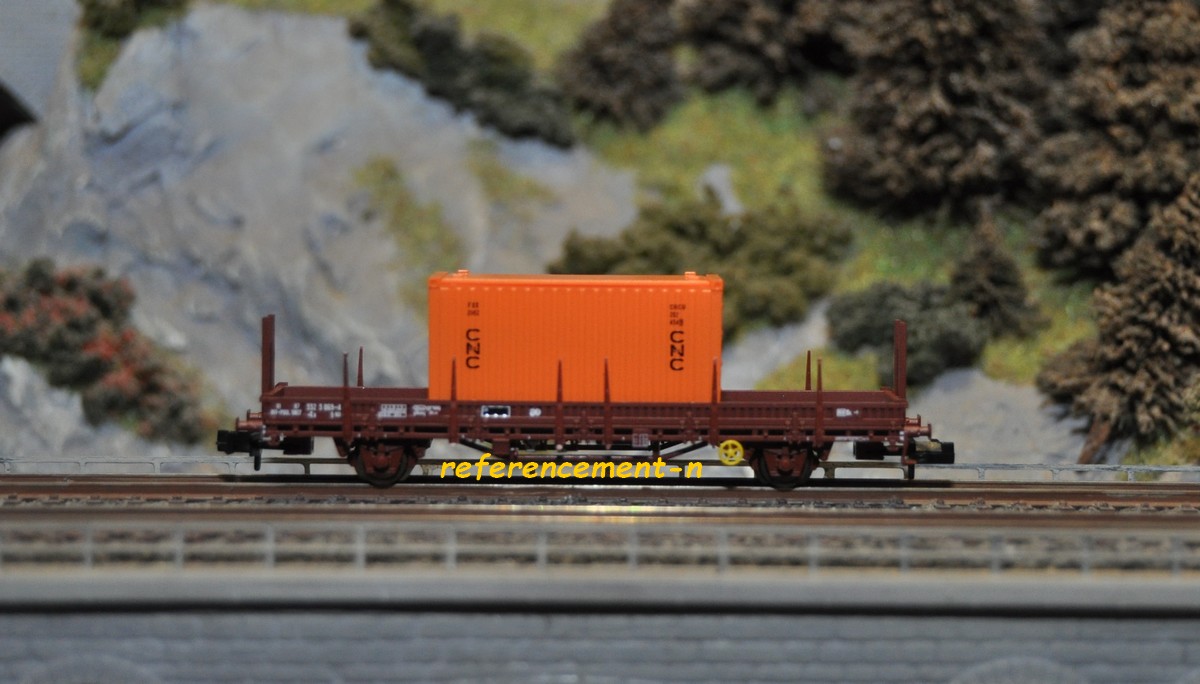 couleur brun UIC Marquage RIV ¨POOL SNCF Tampons rectangulaires Conteneur 20 pieds orange avec marquage CNC Longueur : 86 mm Attelage NEM à élongation Annonce dans Rail Miniature Flash N° 647 de mars/avril 2020 Présentation dans Loco revue N° 885 d'avril 2021 |