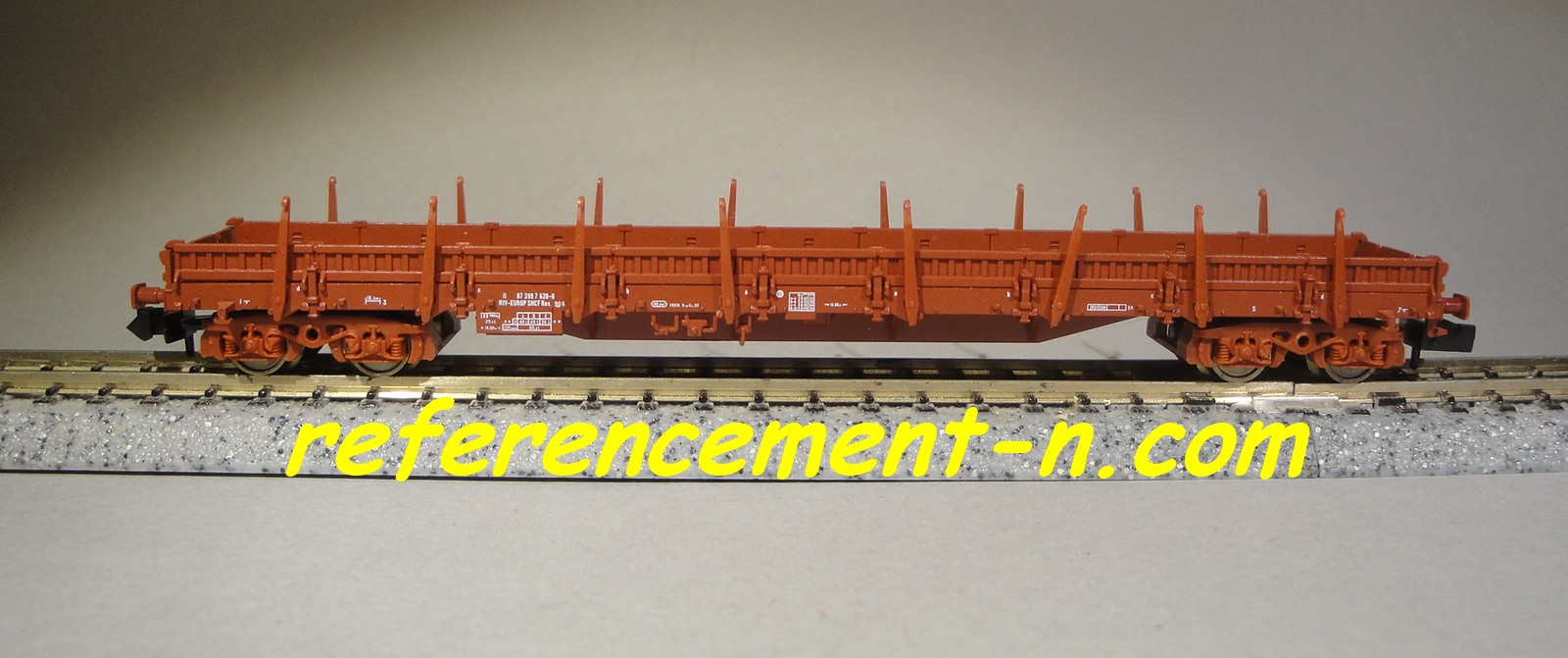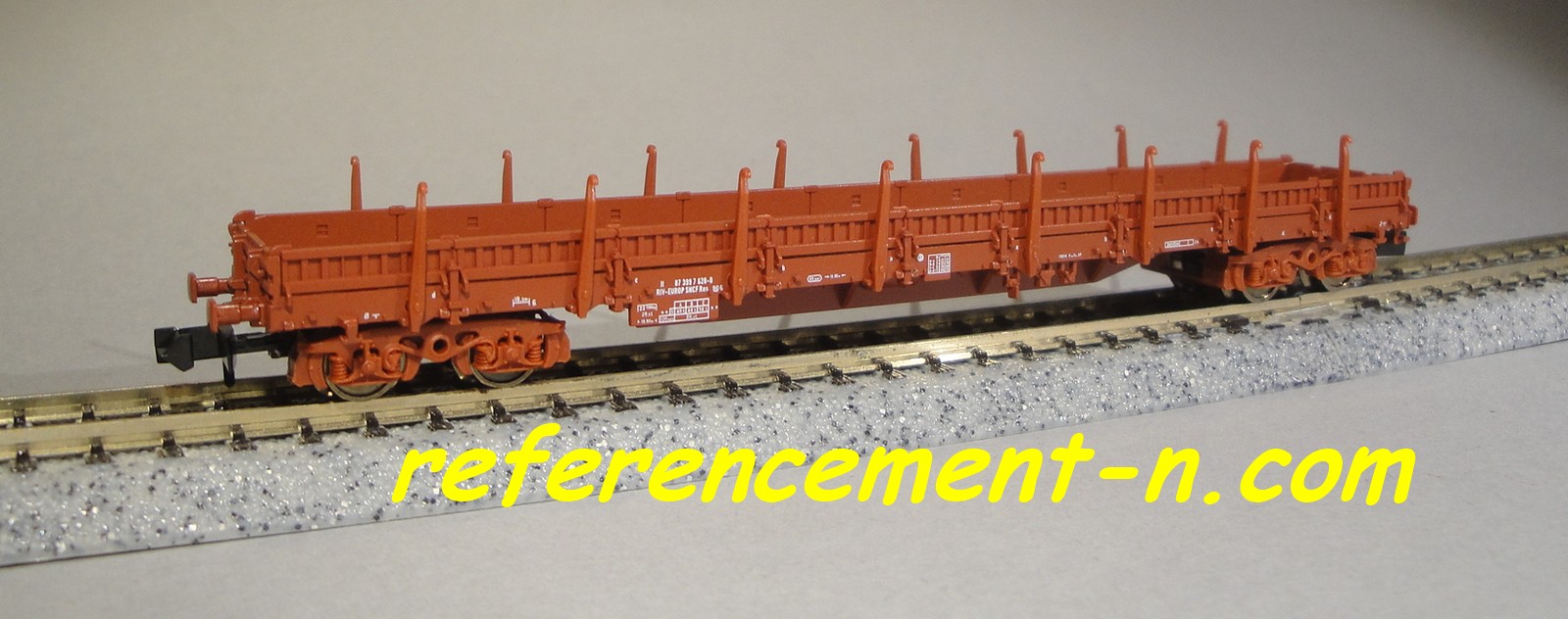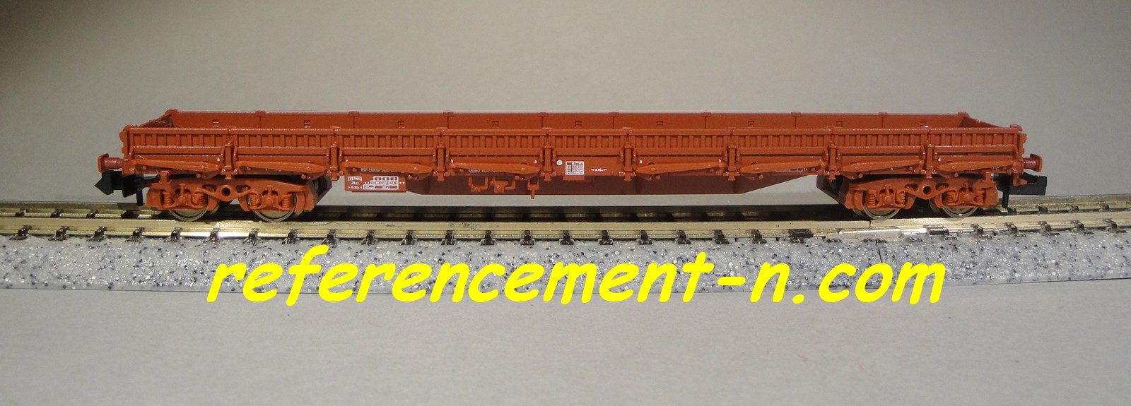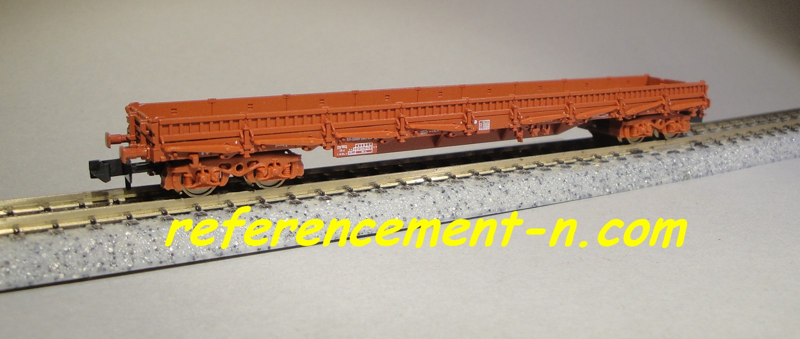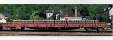 | Description | Wagon plat à bogies avec ridelles basses et ranchers type Remms | |