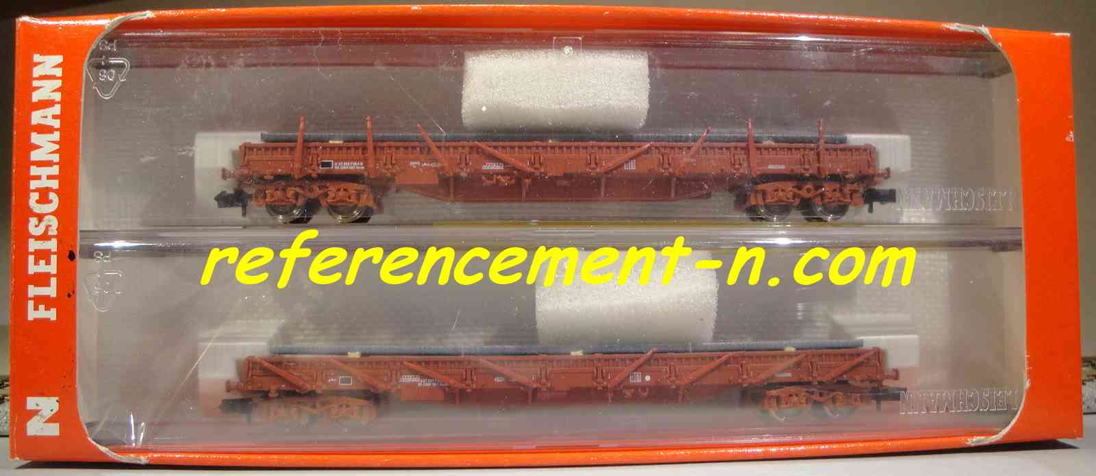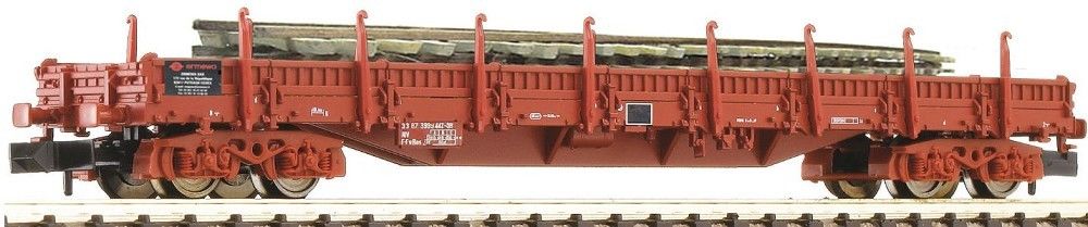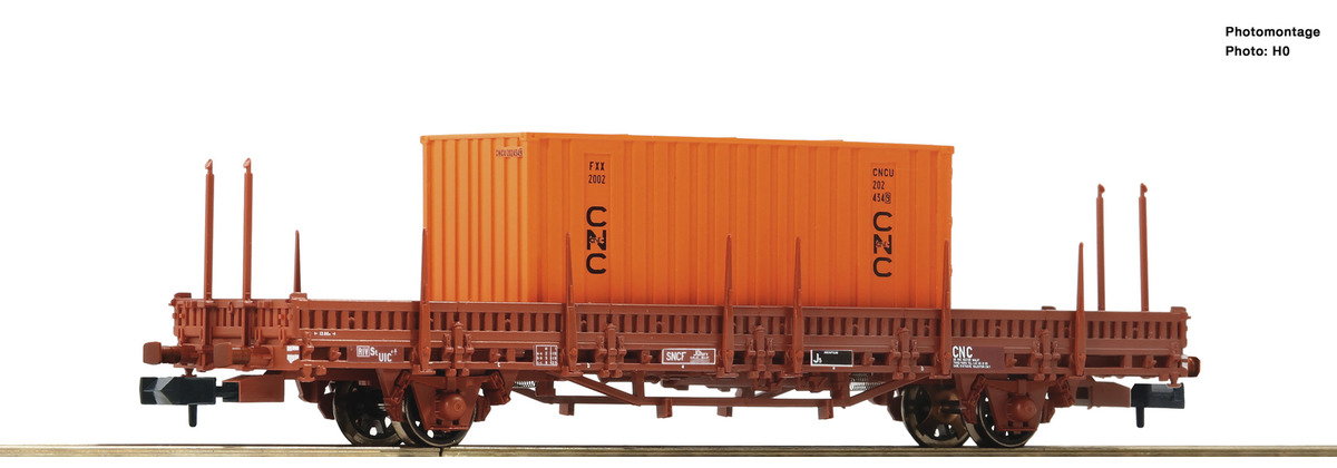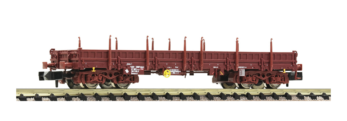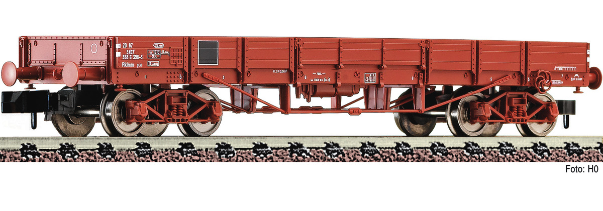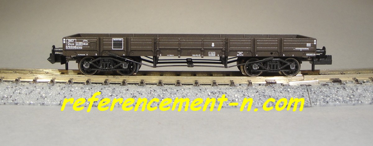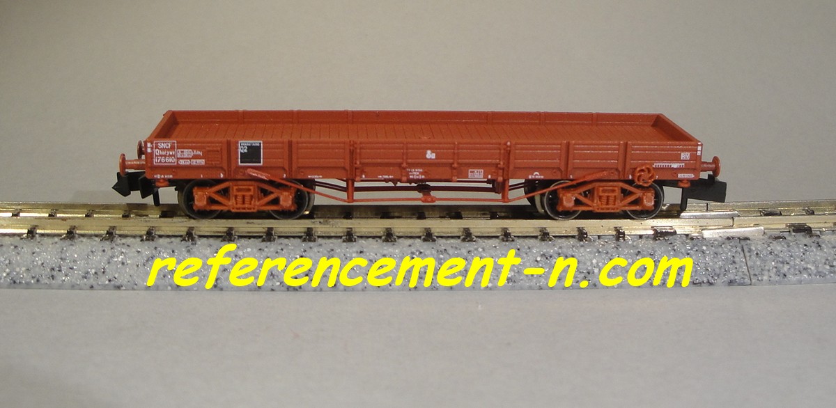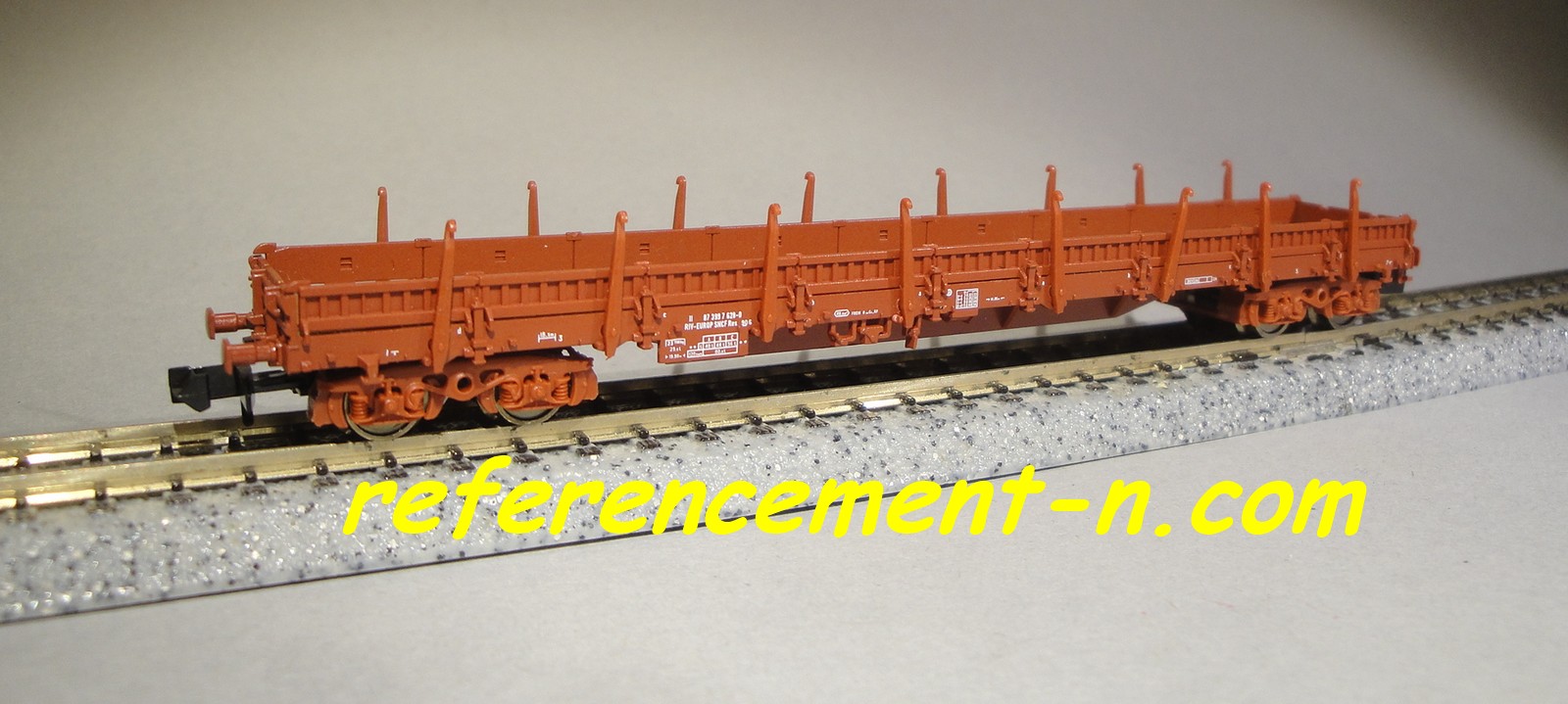 | Description | Wagon plat à bogies avec ridelles basses et ranchers type Remms | |