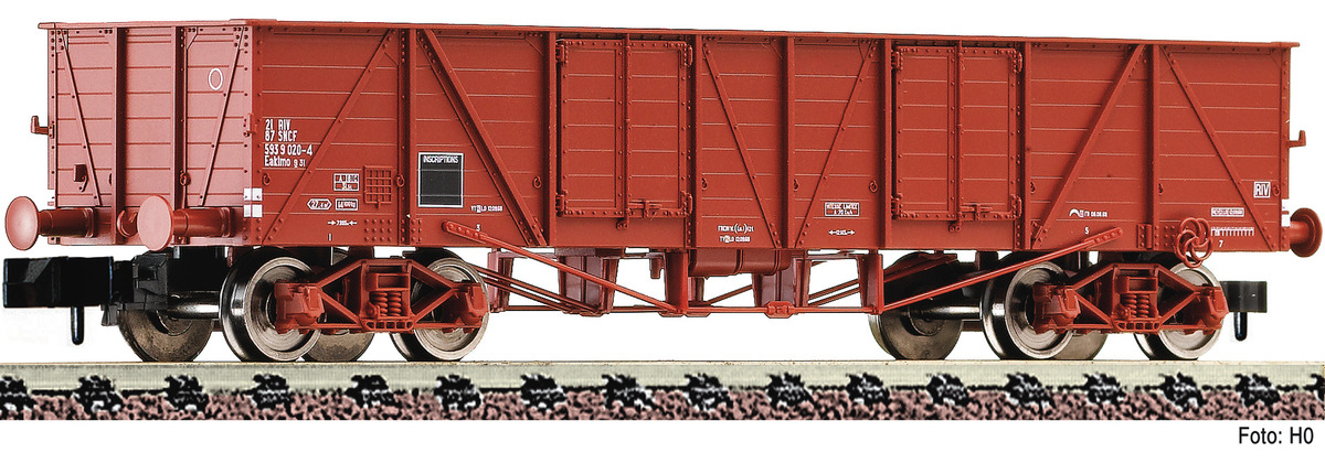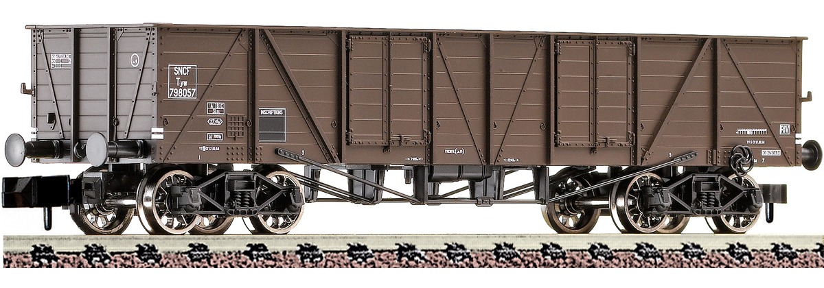 | Description | Wagon tombereau bois boggies brun UIC TP | |