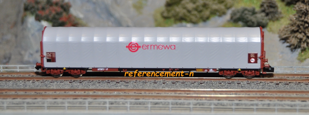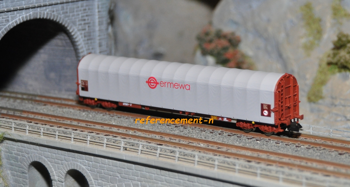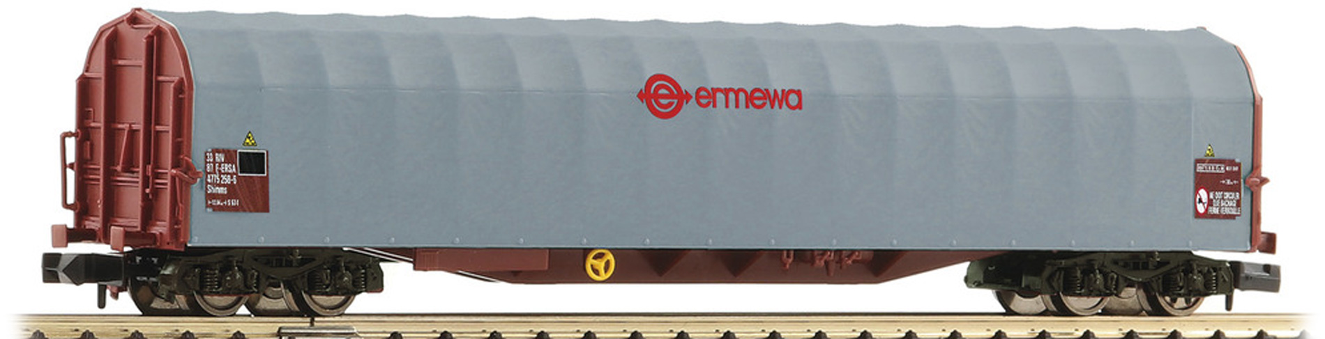 UIC, bâche grise Marquage ERMEWA en rouge sur la bâche Attelage court à élongation NEM Longueur : 124 mm |